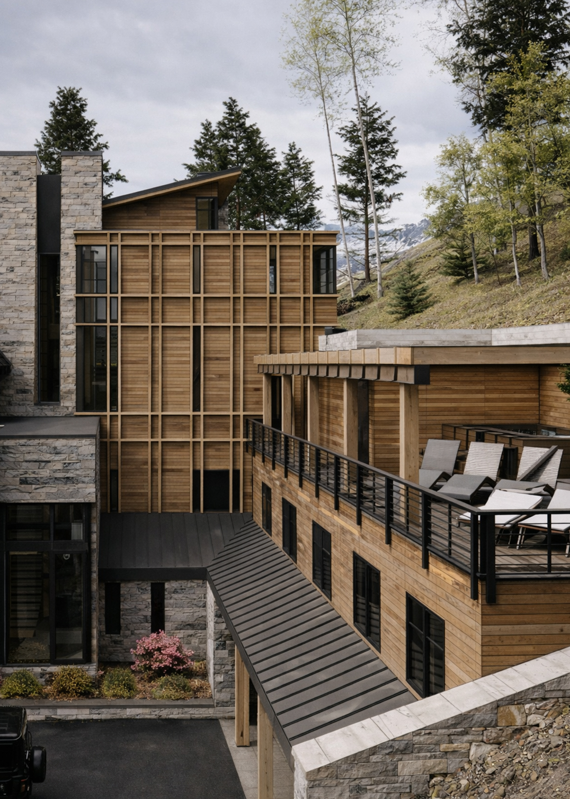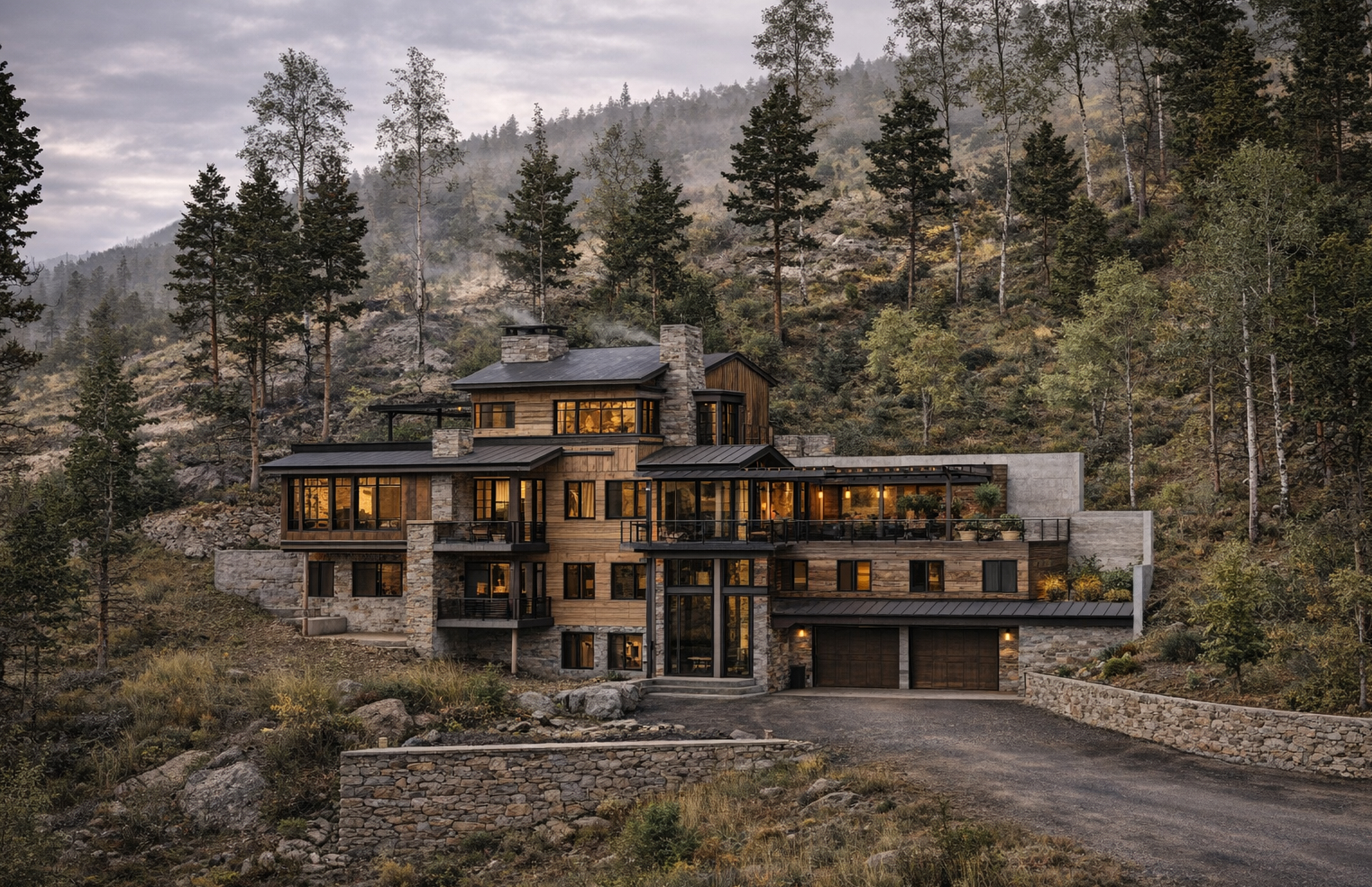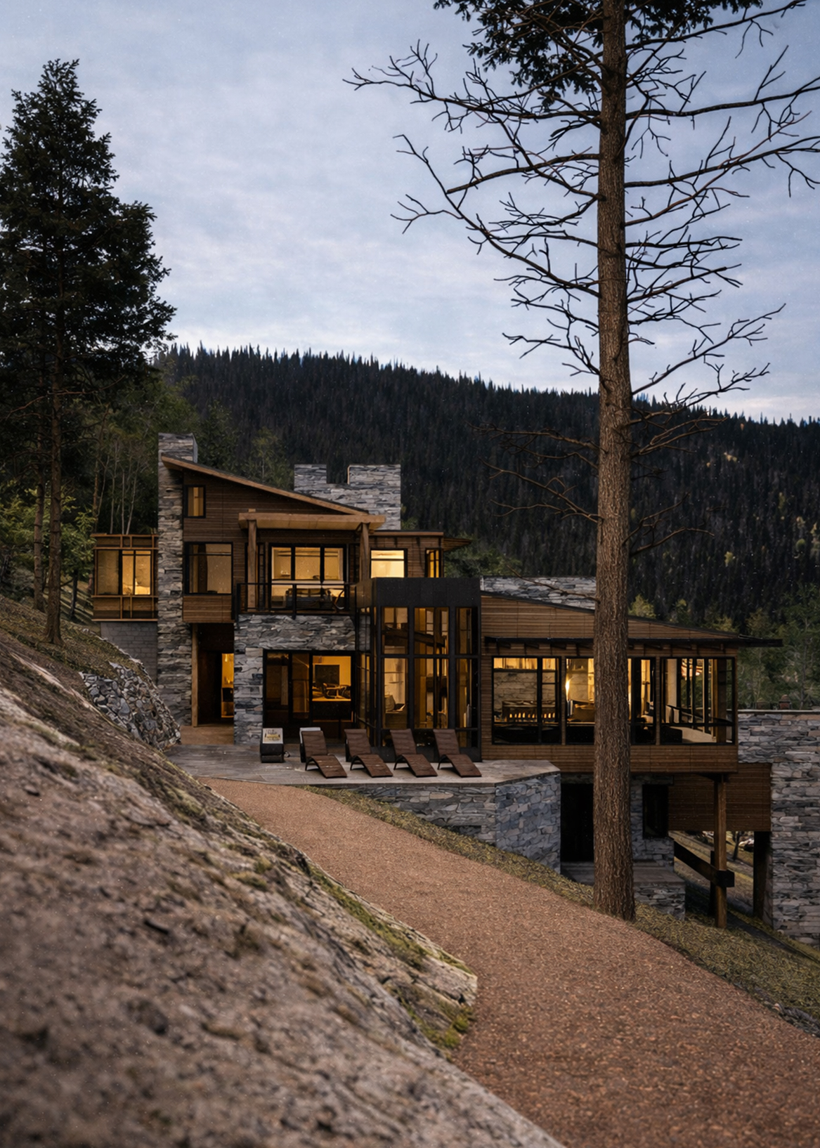 Materials are warm and enduring—stone, wood, and steel layered with intention and care. Inside, the layout balances openness and retreat, with generous gathering spaces, quiet bedrooms, and outdoor areas that extend into the alpine landscape. Thoughtfully designed and built with purpose, ACME is a year-round mountain home—rooted in place, and made for return.