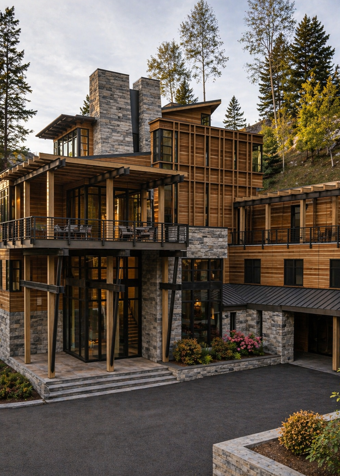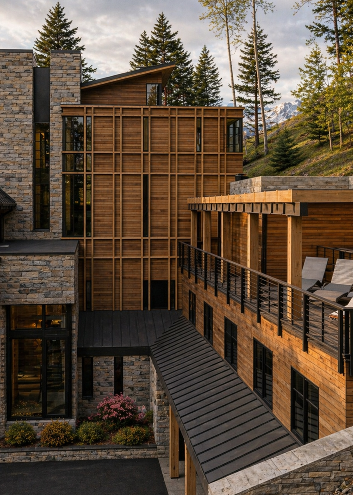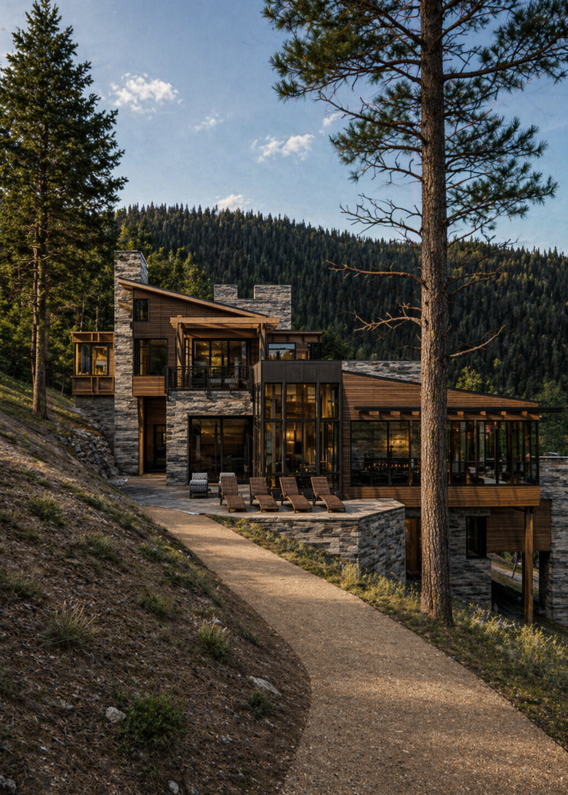 Materials are warm and enduring—stone, wood, and steel layered with intention and care. Inside, the layout balances openness and retreat, with generous gathering spaces, quiet bedrooms, and outdoor areas that extend into the alpine landscape. Thoughtfully designed and built with purpose, ACME is a year-round mountain home—rooted in place, and made for return.
