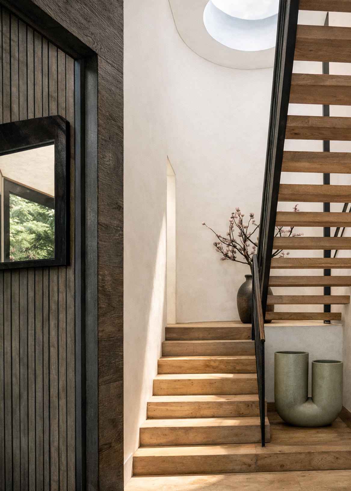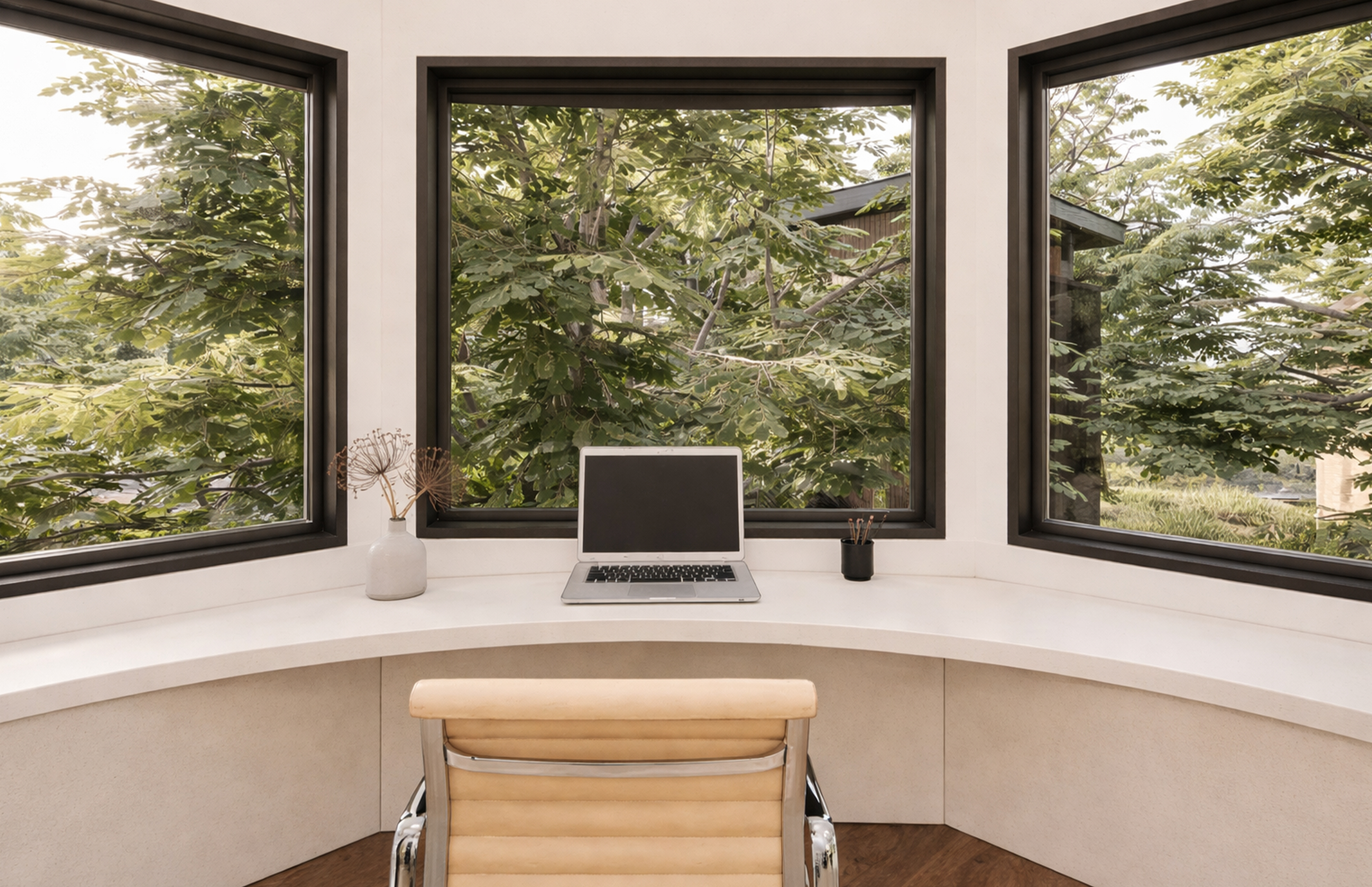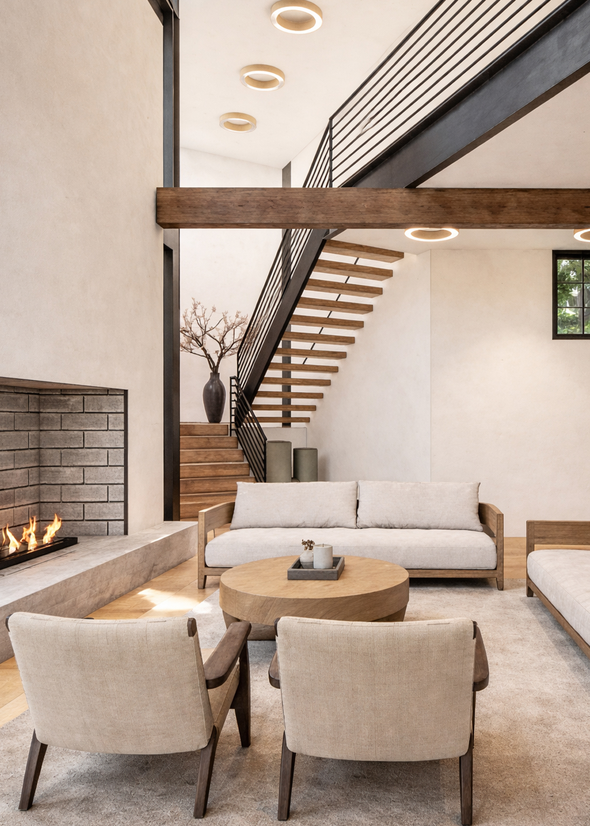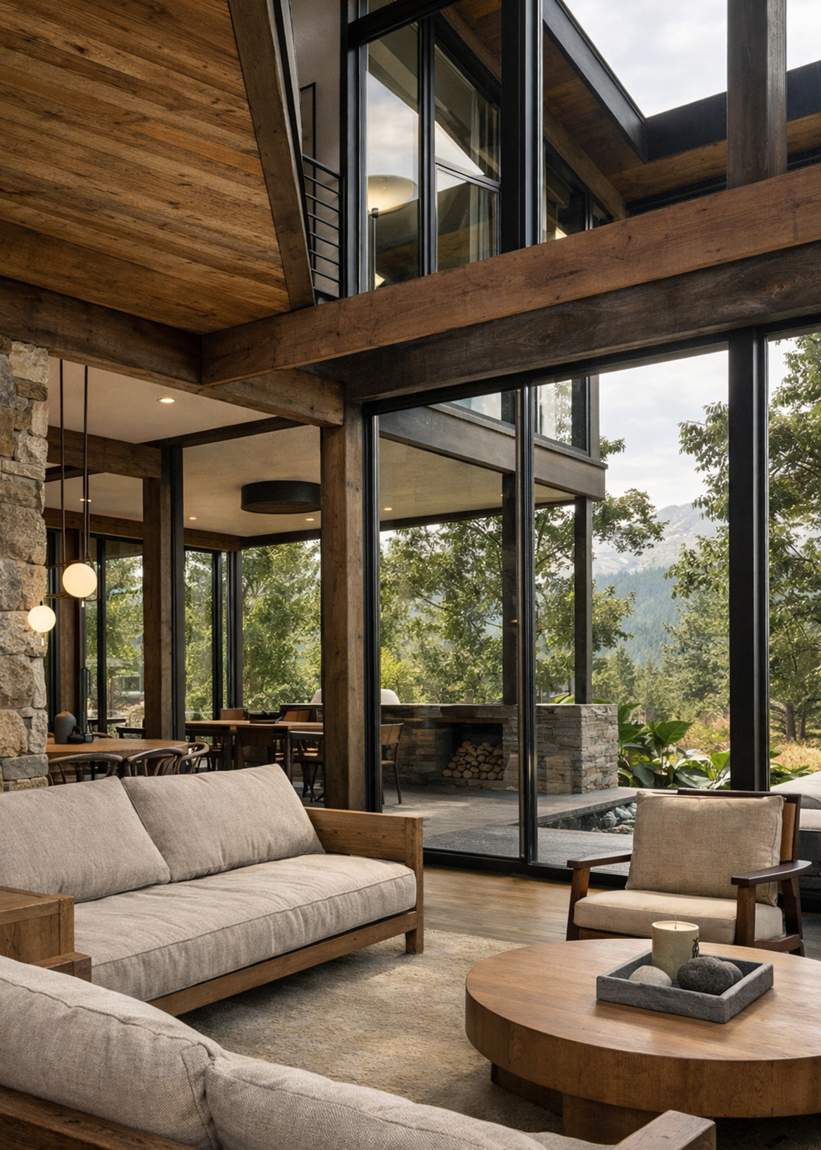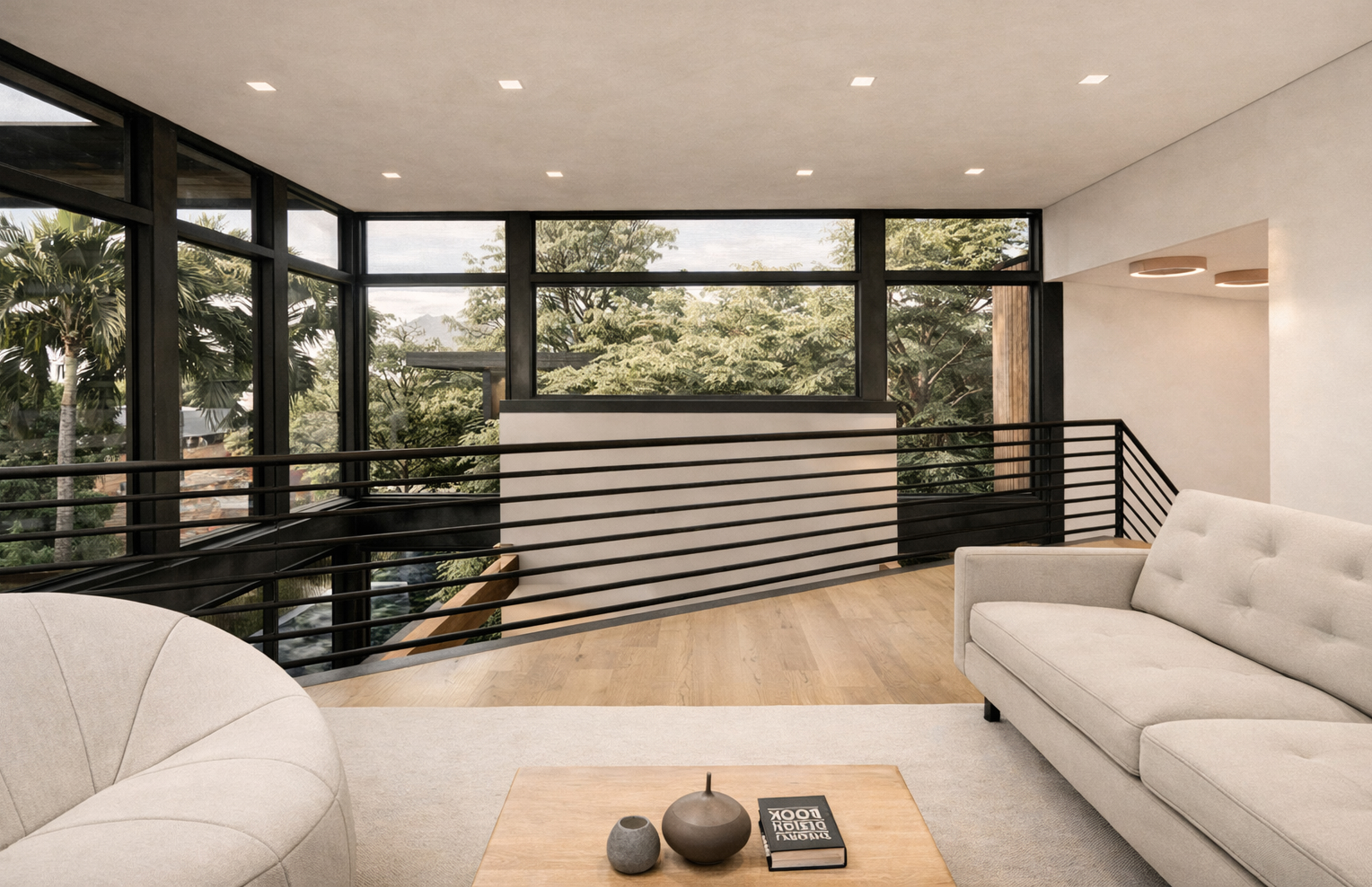 A large pool extends from the house, with trees rising directly from its edge—a gesture that blurs the line between built and natural, garden and water. Throughout, light and shadow shift with the day, animating the interiors and framing views of the horizon.Stone, glass, and timber balance modern clarity with regional charm, grounding the house in the textures of its coastal setting. Both sanctuary and gathering place, the residence reflects the calm of the bay while expressing a refined Southern spirit.