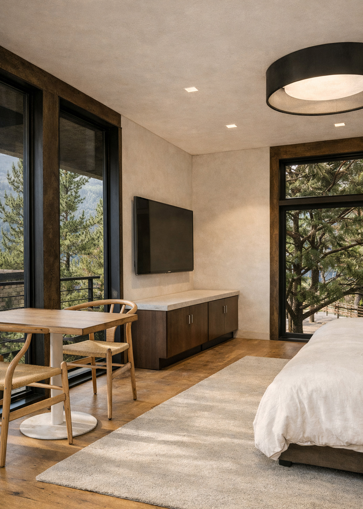 Set along the bay just outside Charleston, this retreat embraces the rhythm of the Lowcountry with an architecture that feels both contemporary and deeply tied to its surroundings. The home is nestled among trees, its crisp geometry softened by warm woods and expansive glazing that invite the landscape to flow through and around the living spaces.