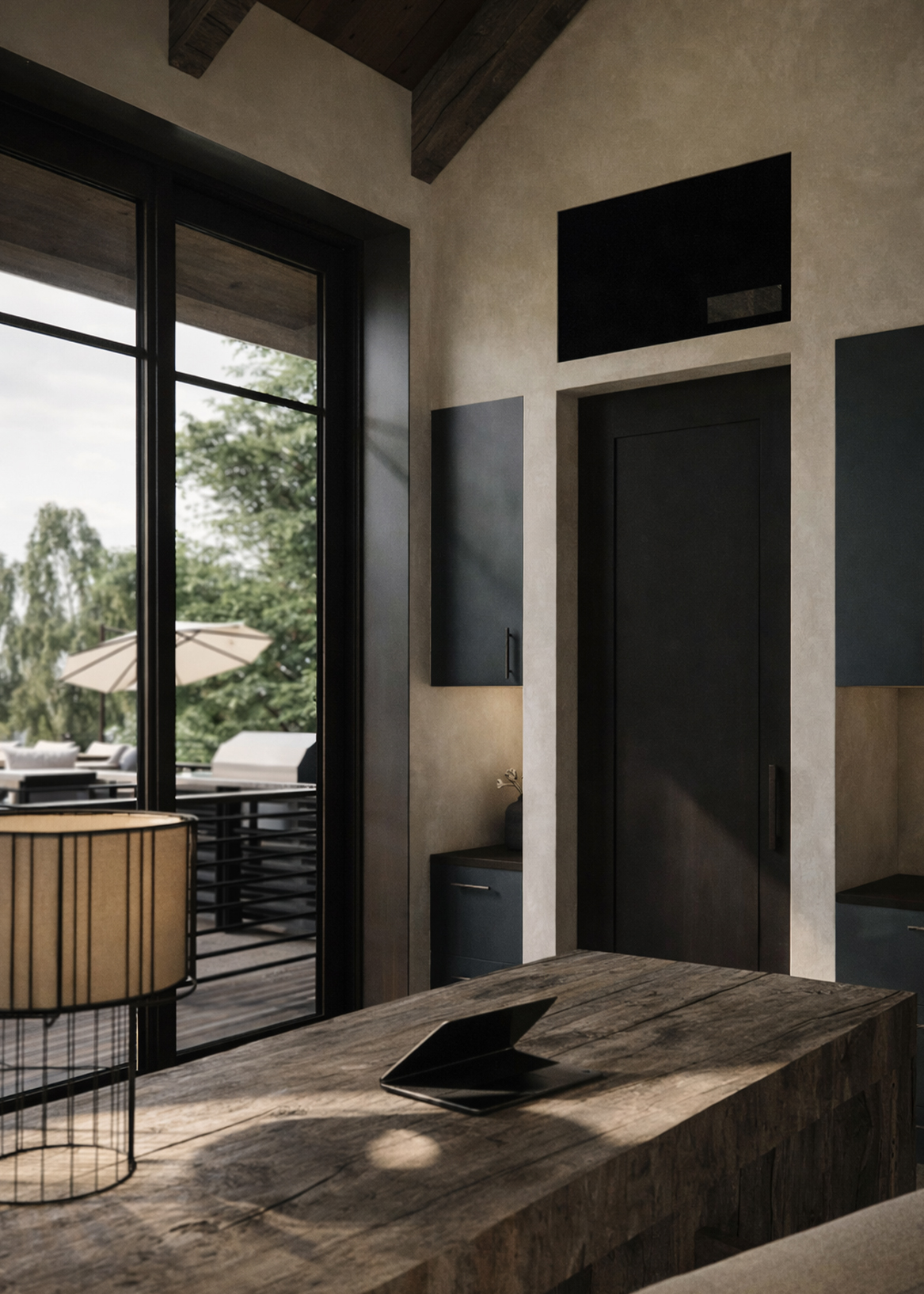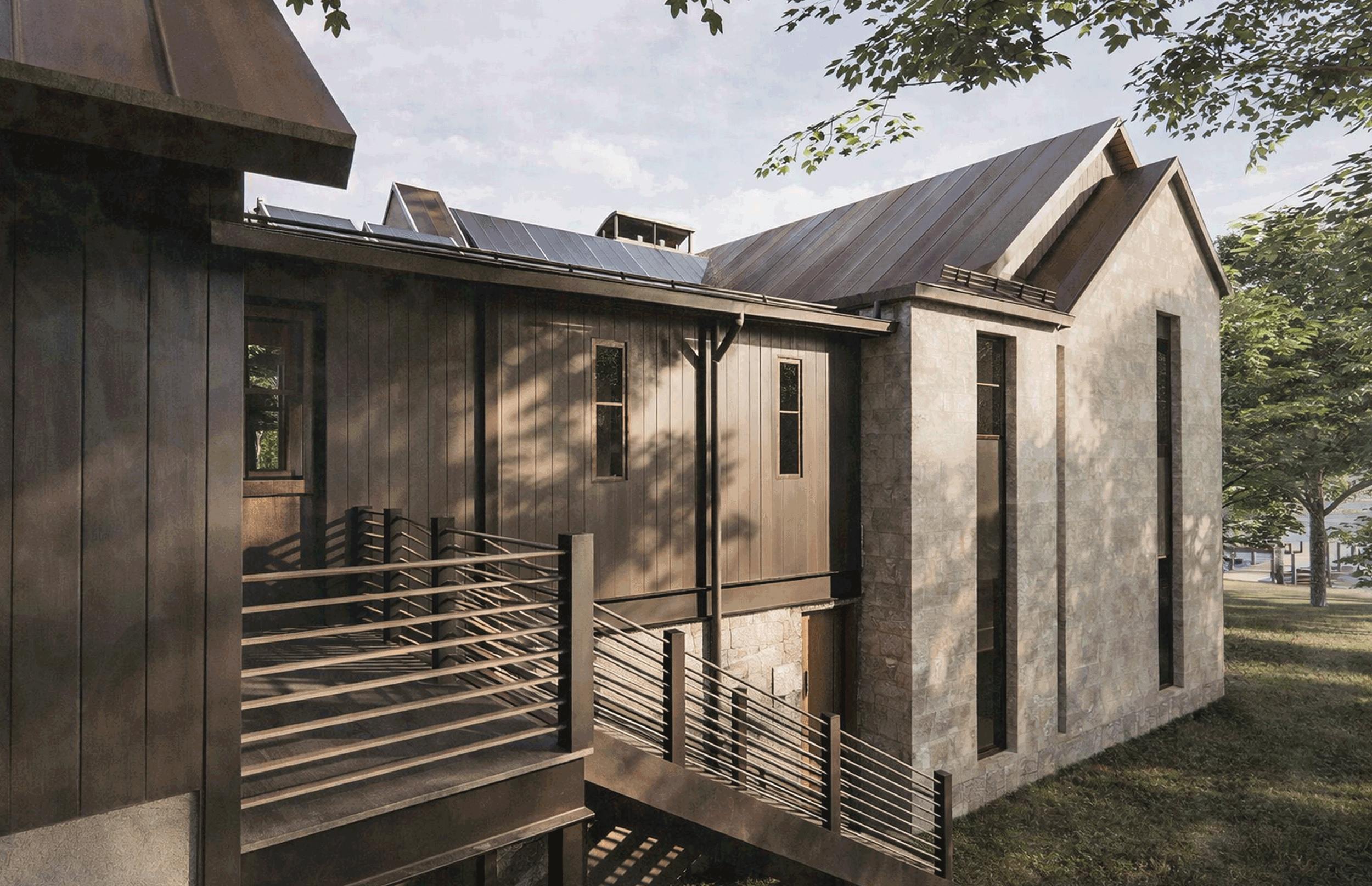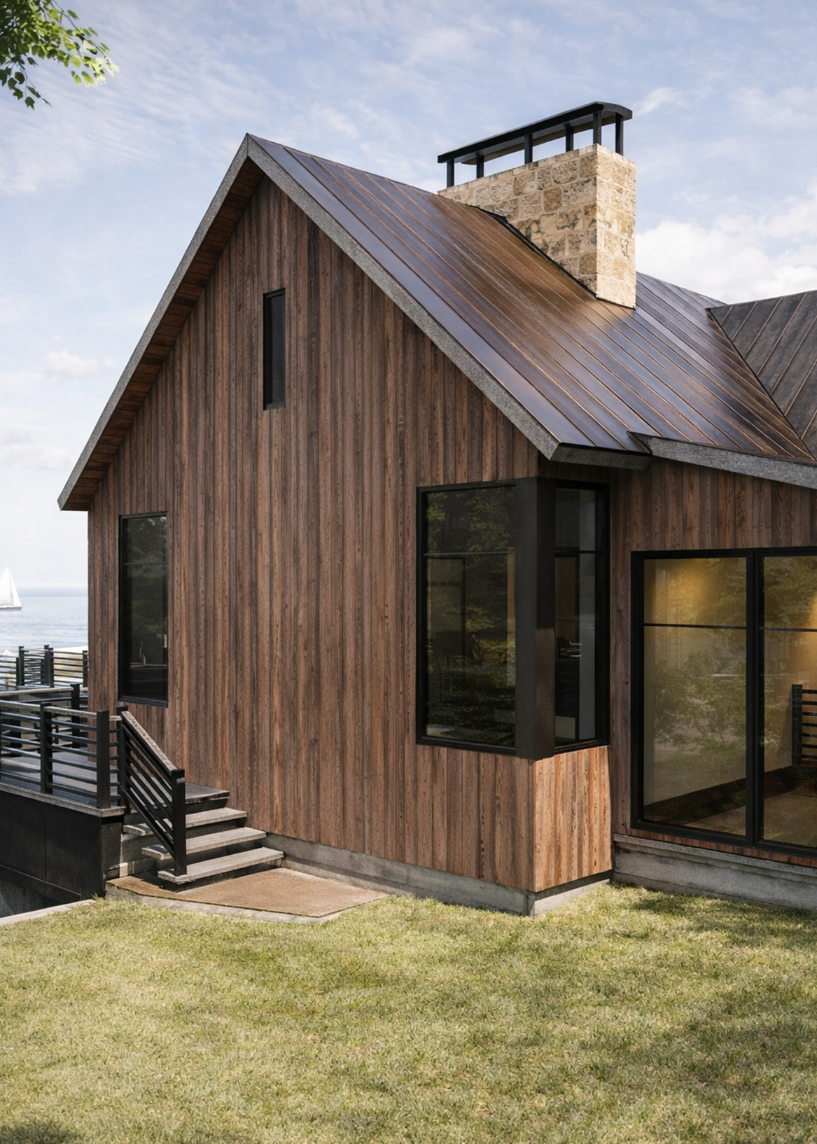 Blue Kettle is a lakeside retreat where wood, stone, and steel root the home in its natural setting, framing a timeless connection to water and sky.