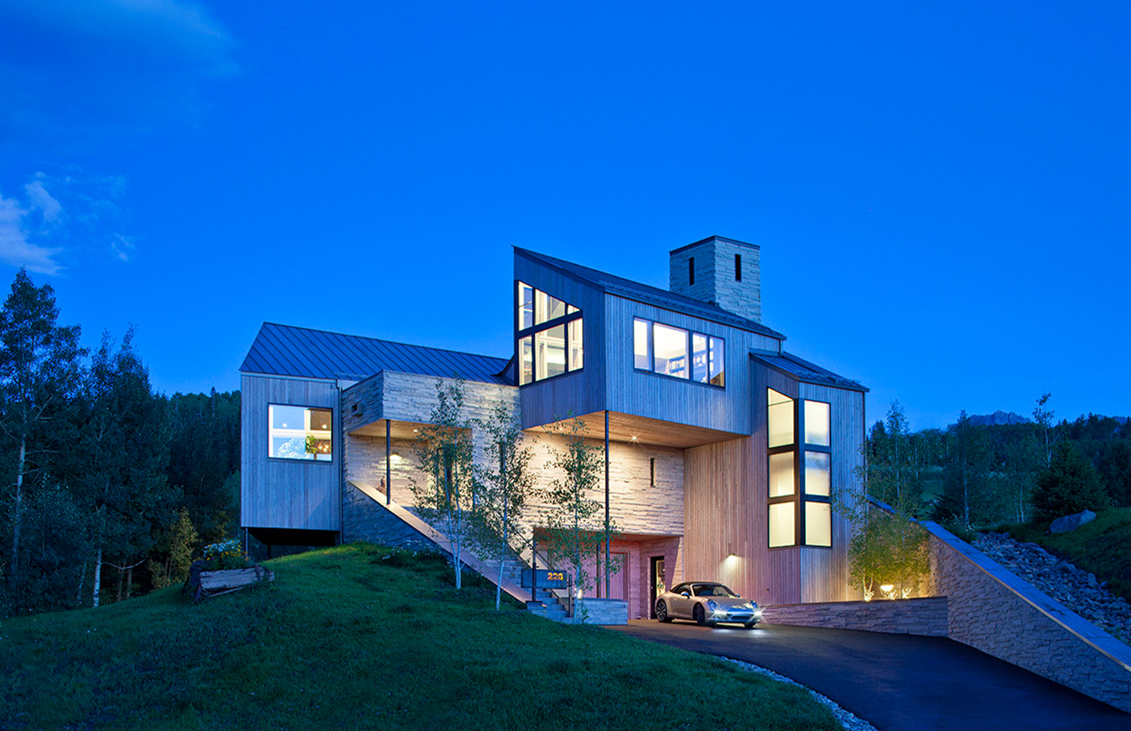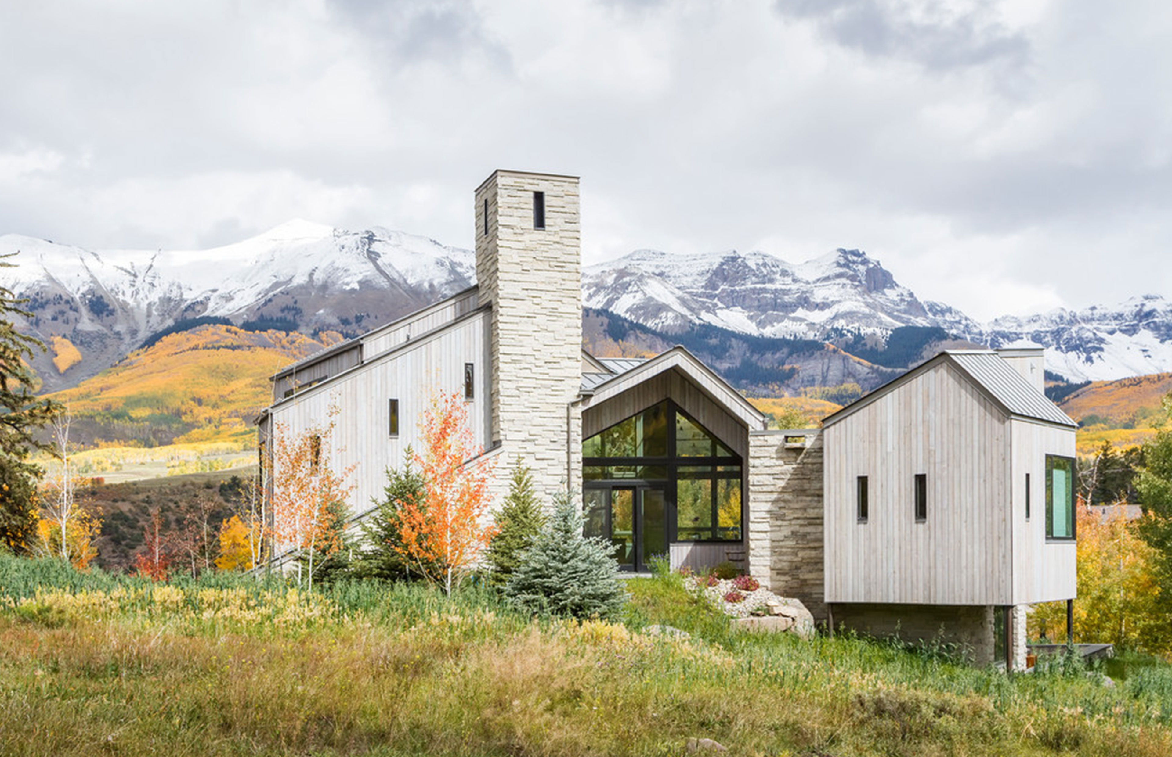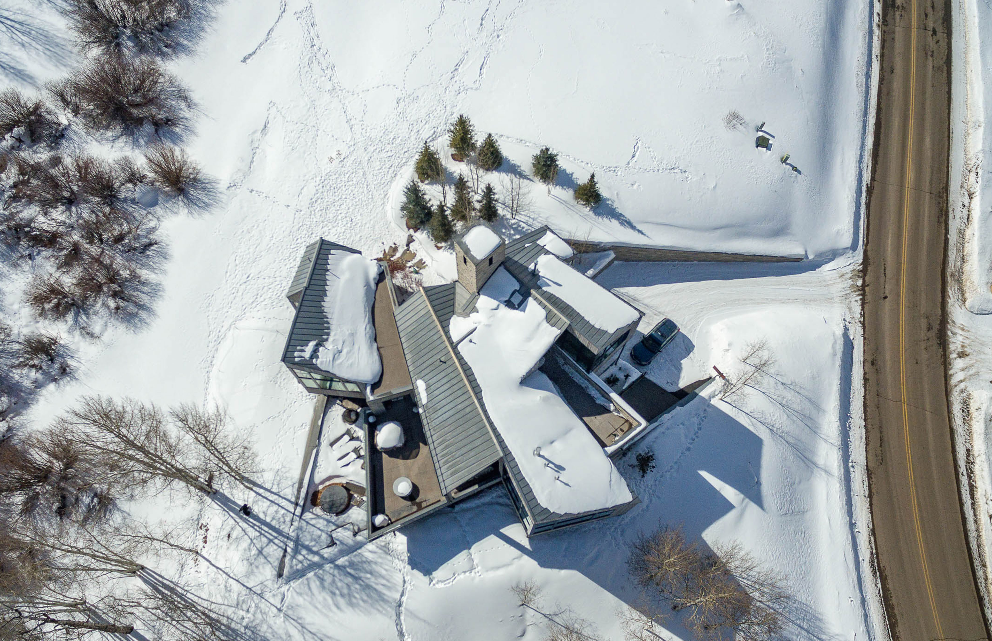 Radial Sheds (Caton) is a modern retreat in Mountain Village, where native trees, shifting light, and the slope of the land shape a home rooted in place and time.