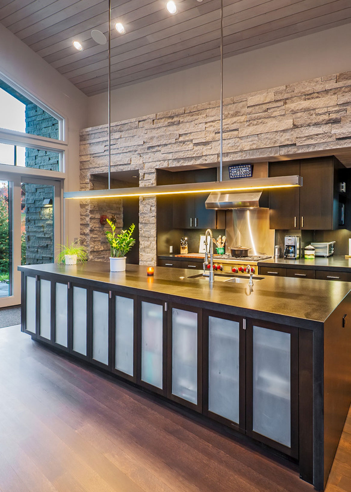 Radial Sheds was shaped by sensitivity to its site—where trees, light, and topography guided every decision. Access was carefully positioned to preserve a grove of native trees, while stone forms create privacy and direct the experience inward and toward the view. The design draws from historic rural structures—simple gabled volumes, grounded stone masses, and a material palette chosen to weather with grace. Rooflines peel back to extend light and space, while the composition suggests a place that has grown naturally over time.