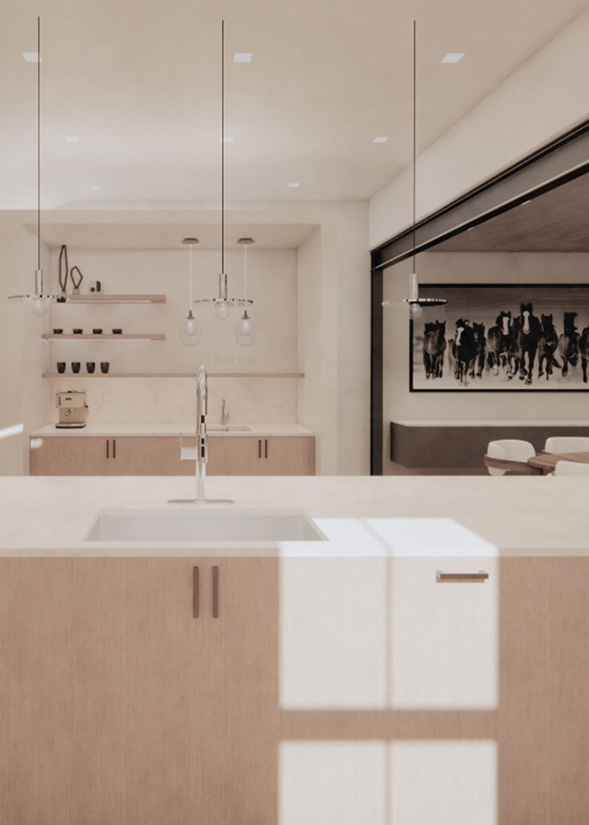This complete reimagining of a 1970's home retains the original footprint while transforming every surface, opening up views, and redefining the relationship between interior and exterior.