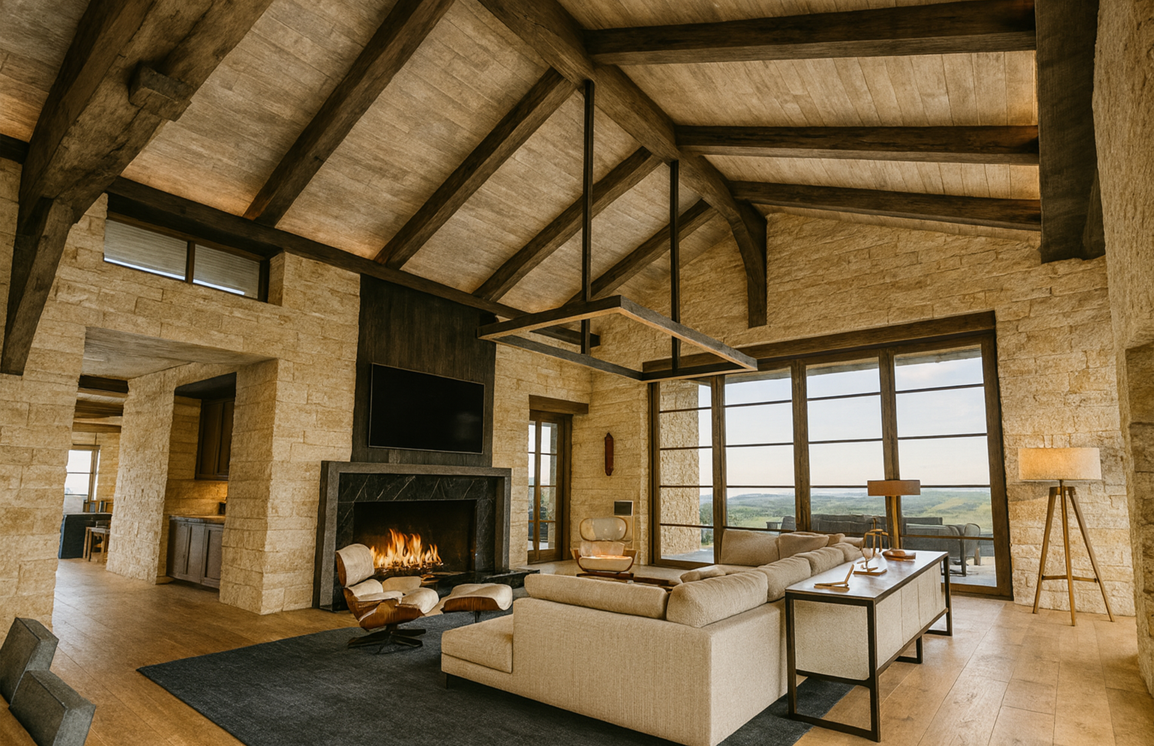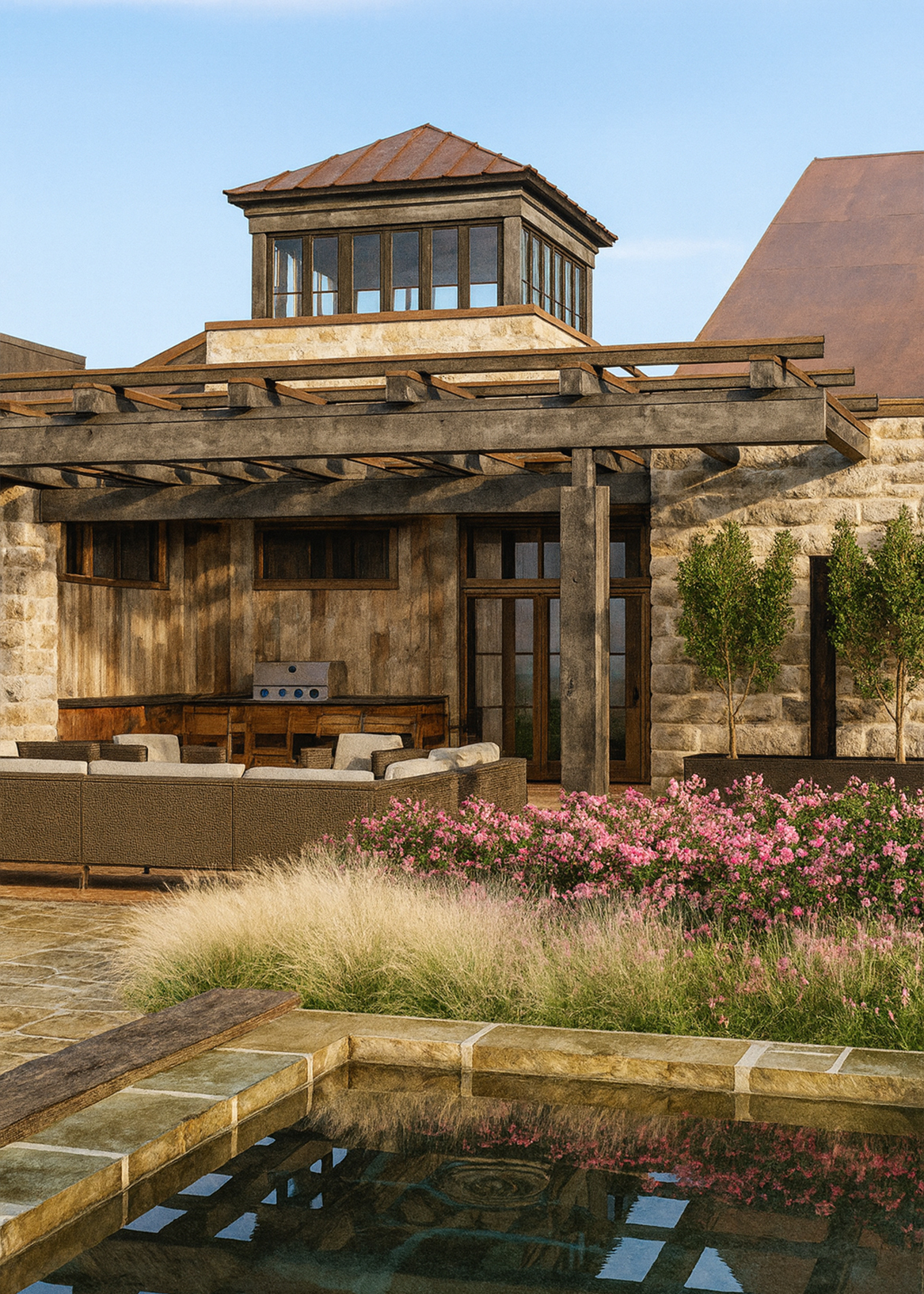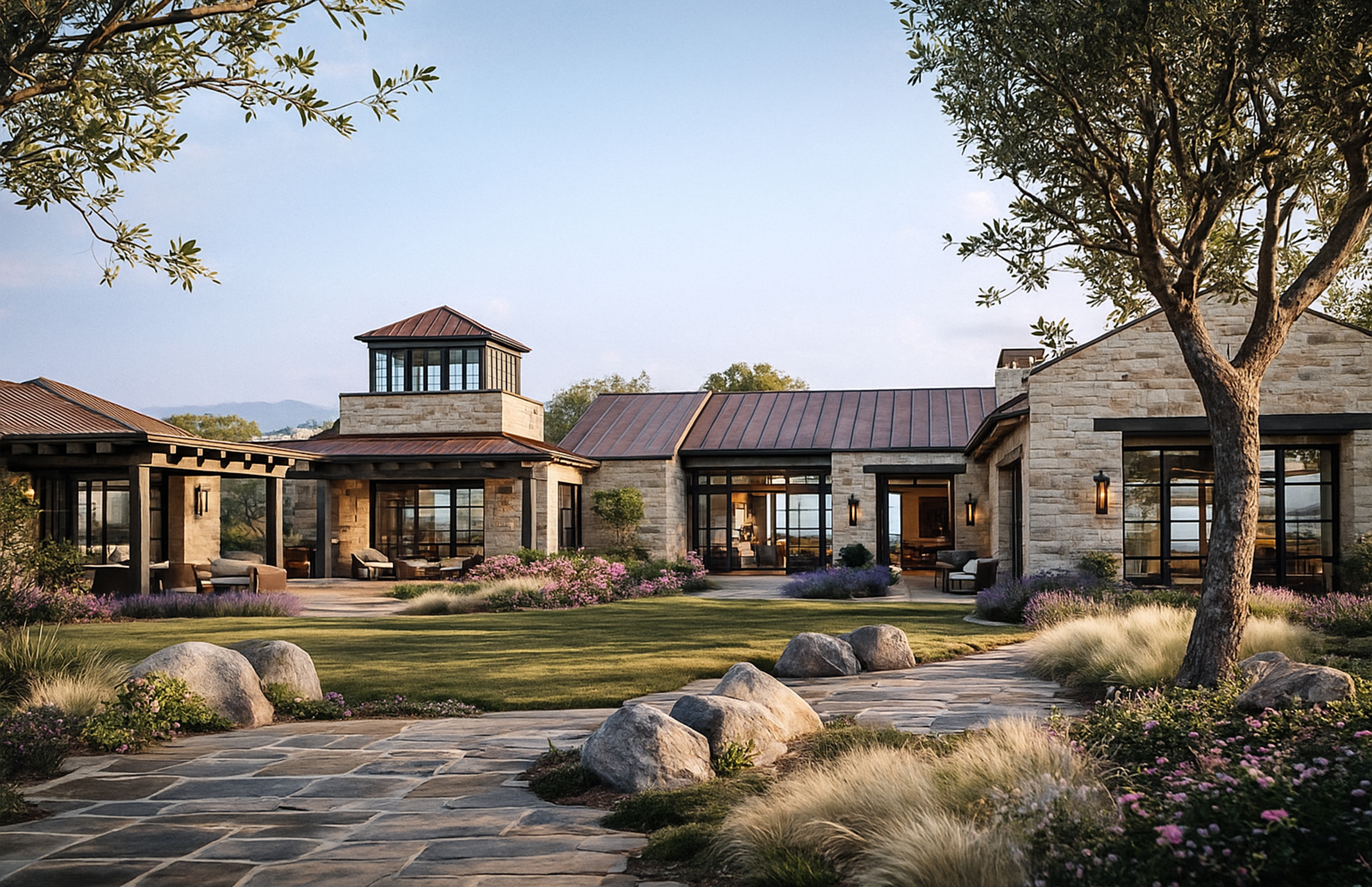 Perched above the Santa Barbara coastline with sweeping views of the Pacific, Ladera reinterprets the timeless elegance of Spanish Revival architecture through a contemporary lens. The home’s gabled forms and textured stone walls root it in tradition, while clean lines and expansive glazing bring a sense of openness and light.