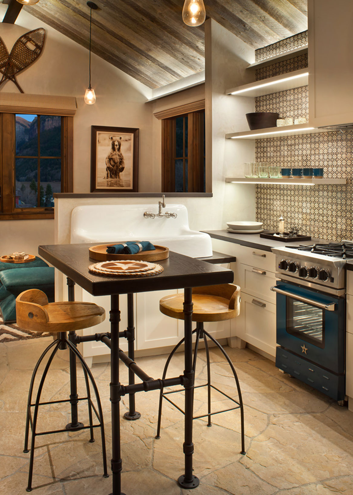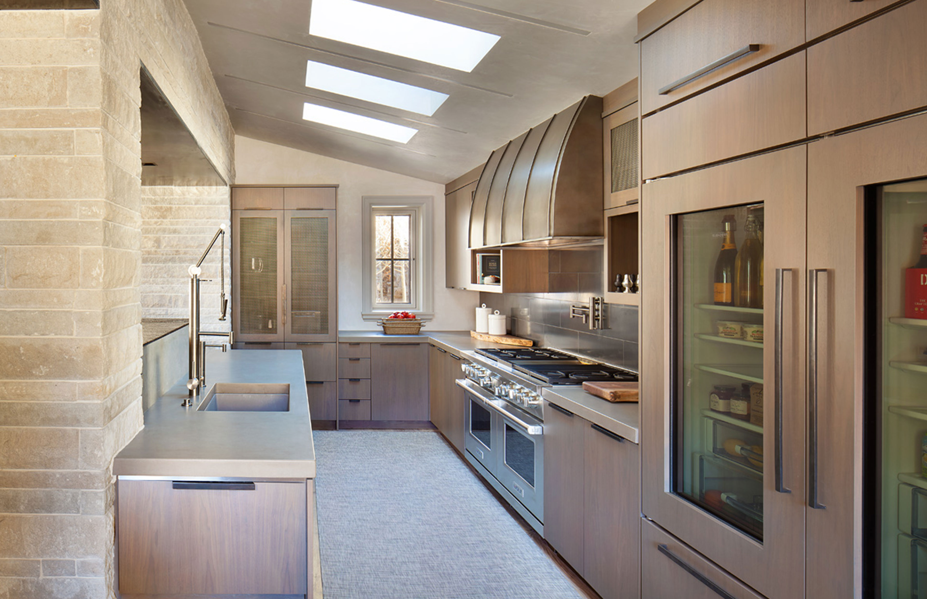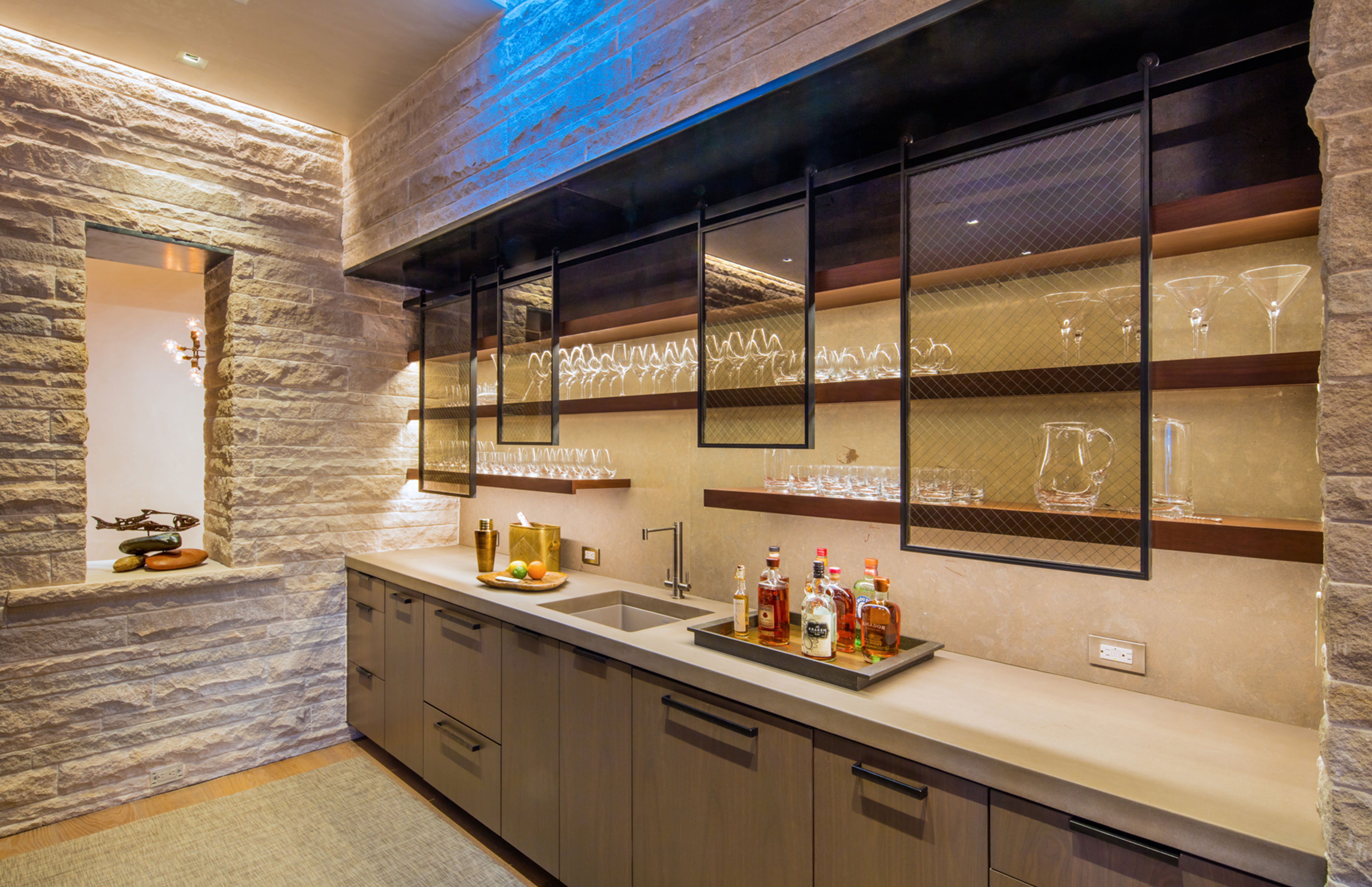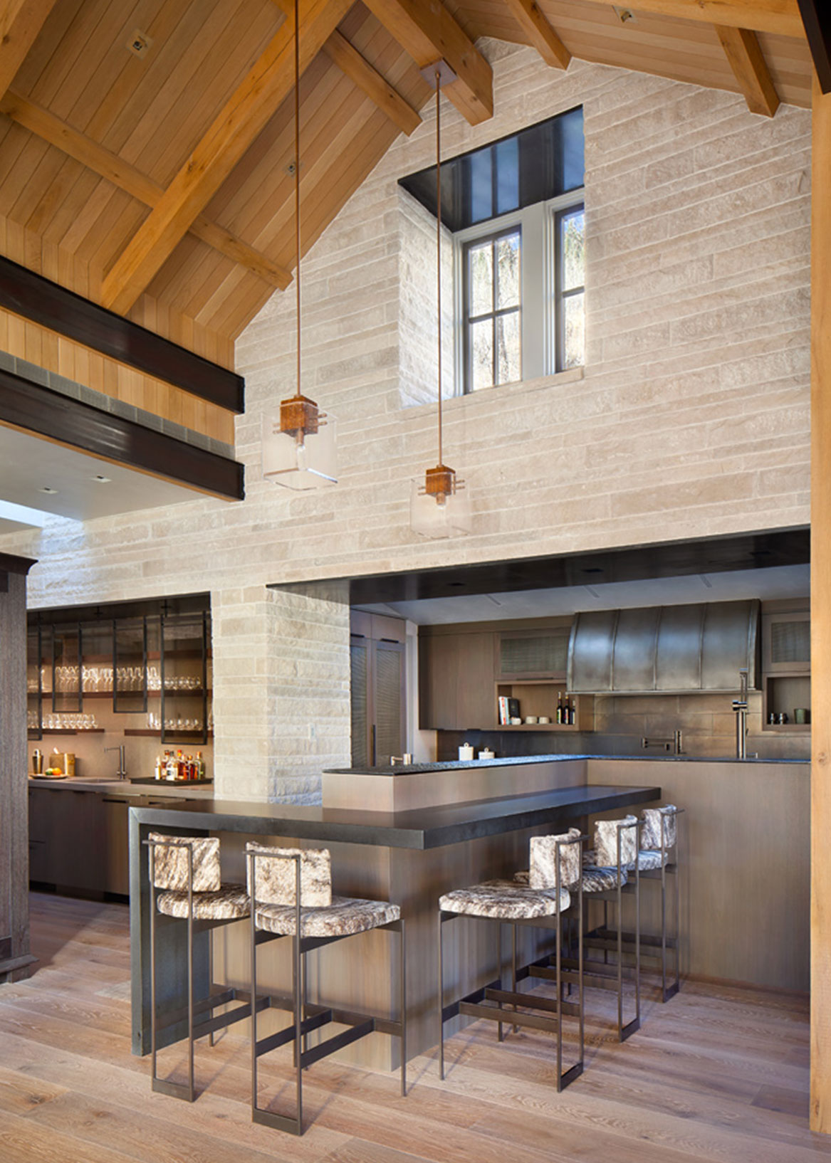 Broad overhangs and carefully placed glazing support a passive solar strategy, inviting light in winter and providing shade in summer. Materials were chosen with restraint: stone-like retaining walls, weathered surfaces, and a utilitarian palette that blends with the land while echoing the rustic character of its neighbor. The result is a house that honors Telluride’s past while offering a contemporary retreat—anchored to its site, respectful of its context, and crafted for modern living.