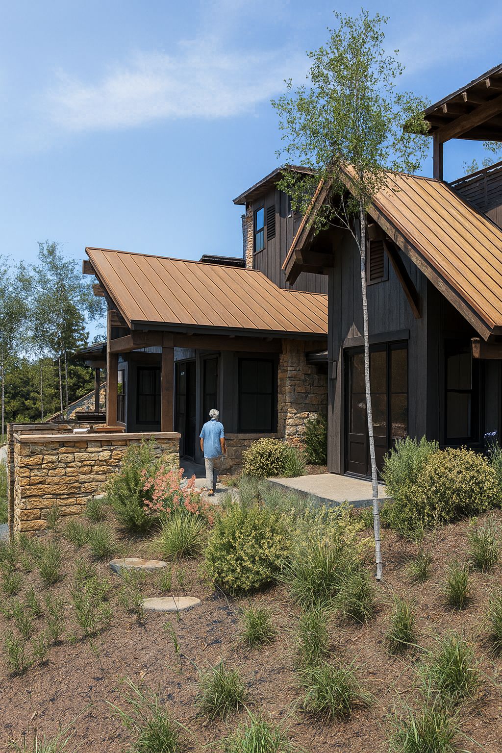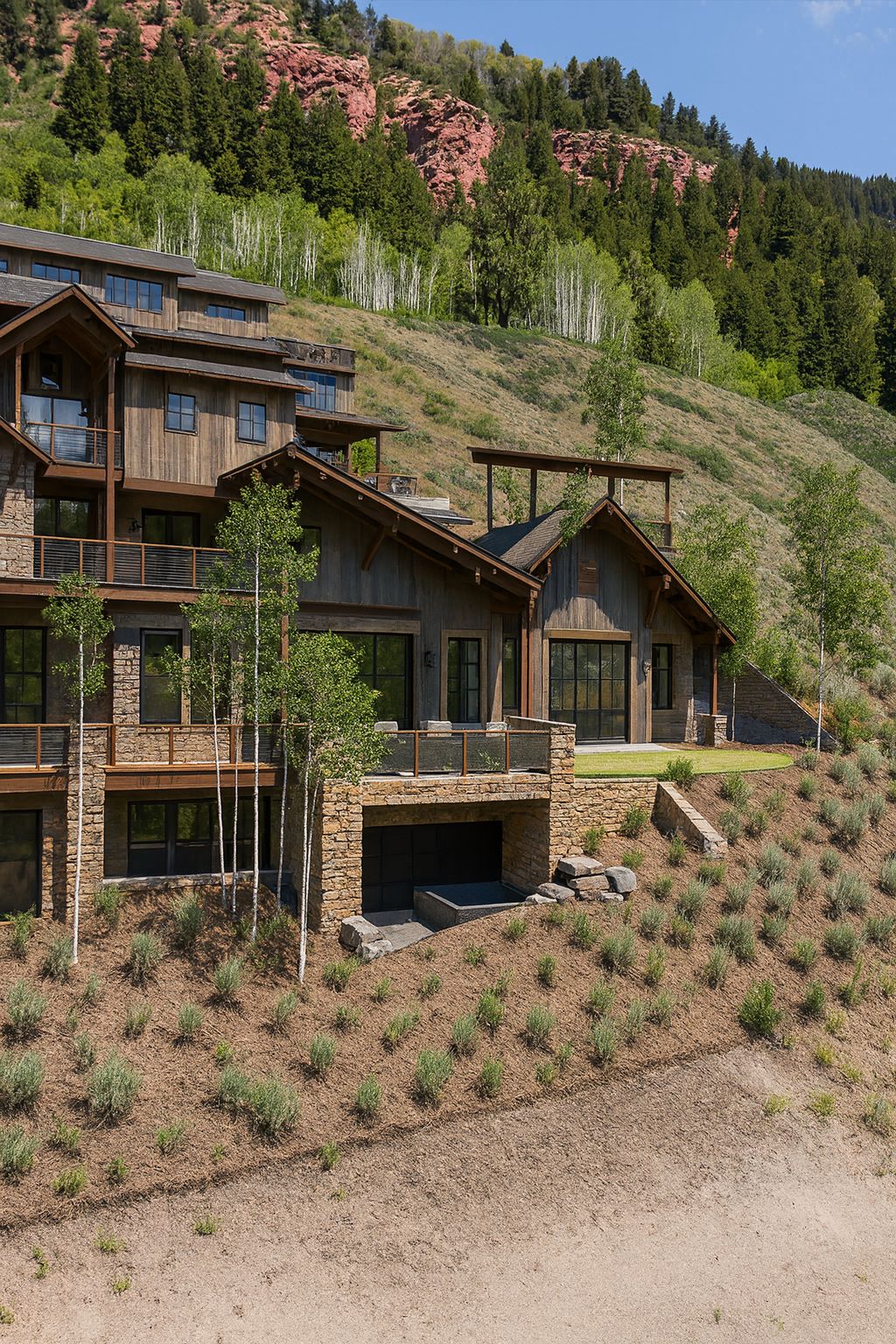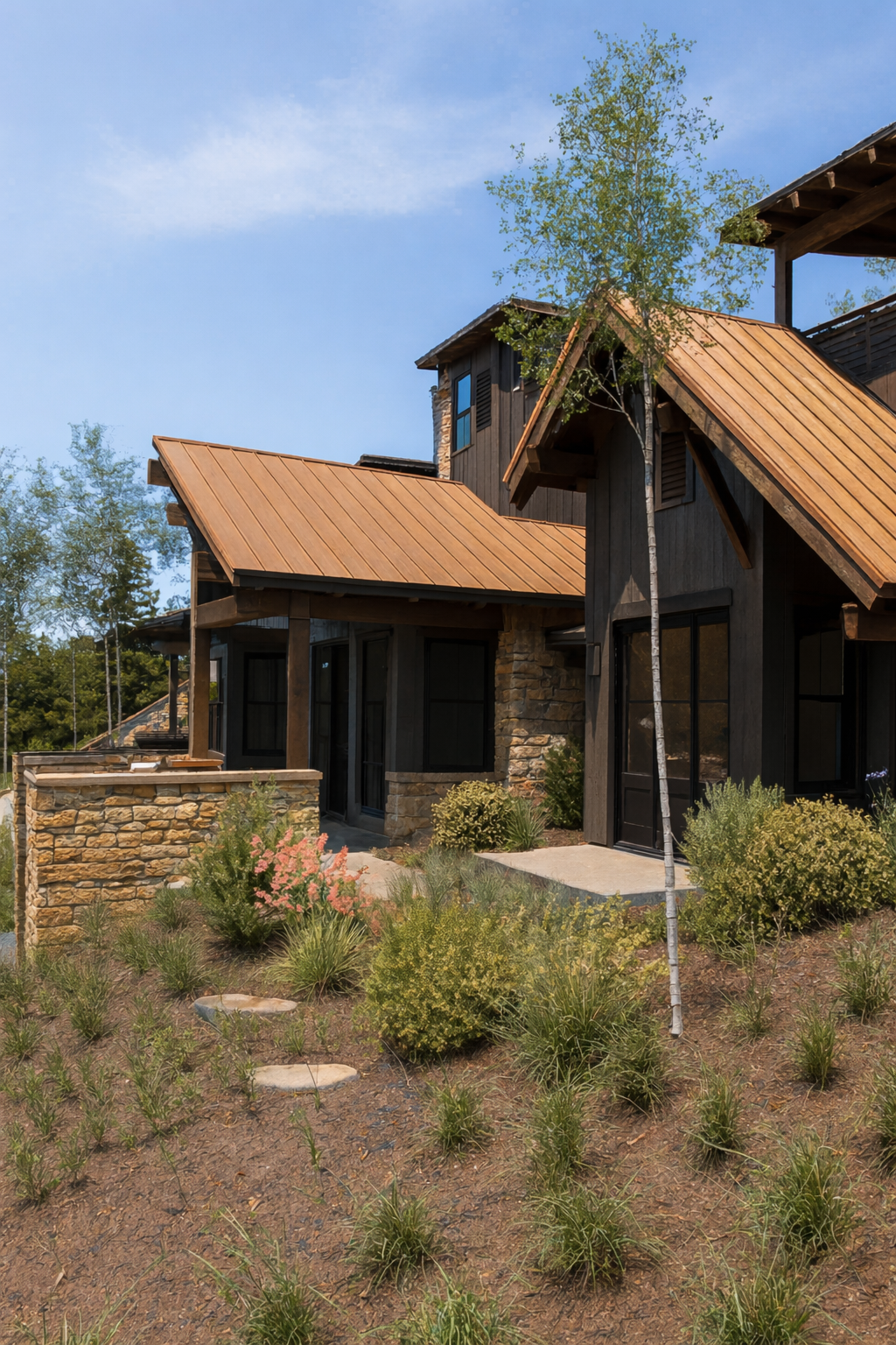 The design balances the ruggedness of the site with moments of retreat, opening to a generous yard that connects the home to the landscape. From every angle, Overlook captures the essence of mountain living, anchored in natural materials, oriented to the peaks, and seamlessly tied to its setting at the edge of town.
