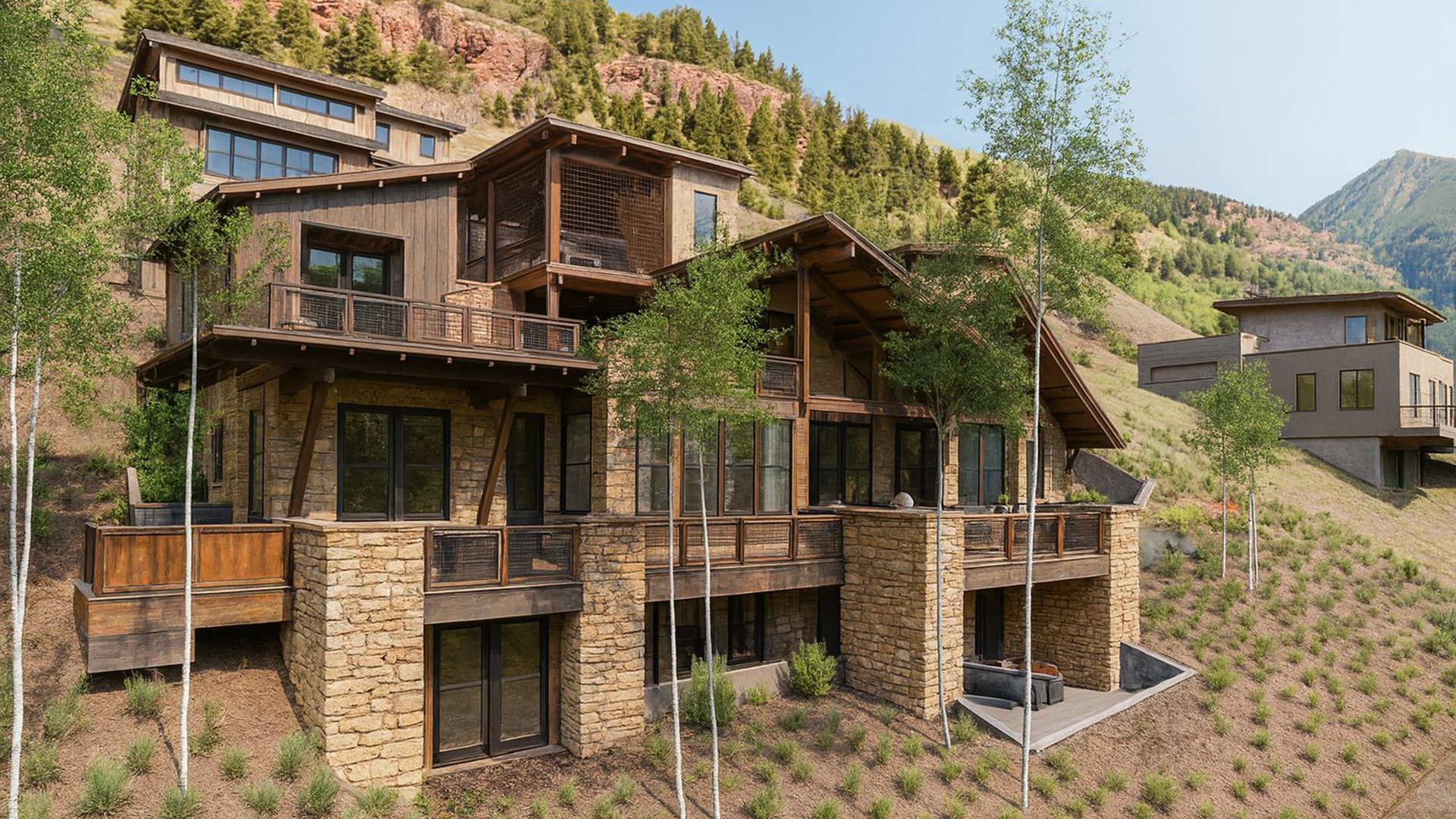 Set on a steep mountainside at the edge of Telluride, Overlook uses stone, steel, and wood to root the home in place while framing panoramic views of Ajax, Bear Creek, and the town below.