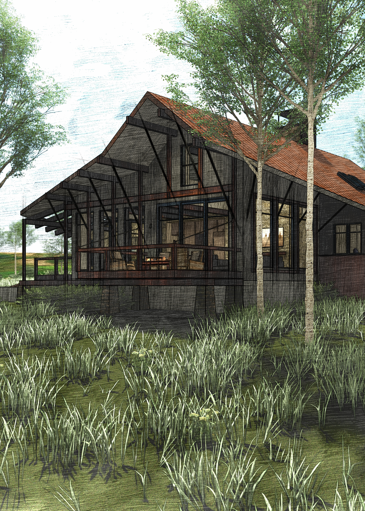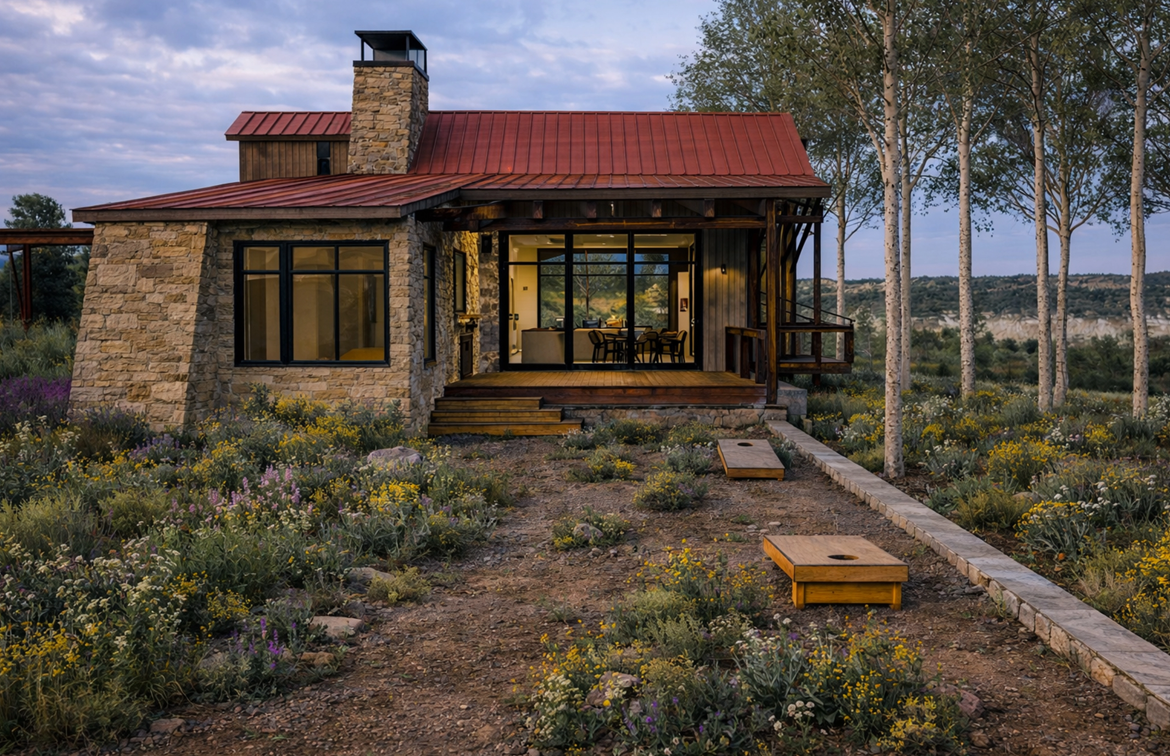 Designed as Tommy Hein’s personal home and sanctuary, Red Cloud Retreat draws from the quiet strength of rural western compounds. Tucked among aspen groves above the second fairway, the home is carefully nestled into the land—positioned for light, views, and shelter from the wind.