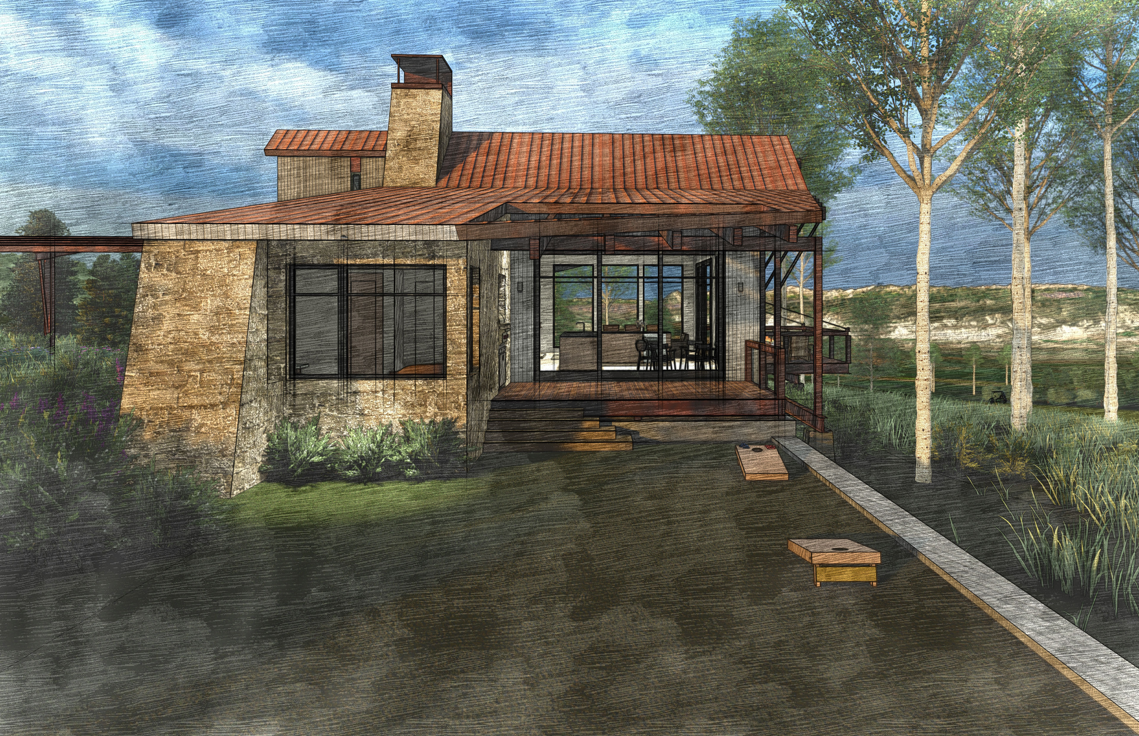 Barn-inspired forms, a detached garage, and sloping geometries echo the region’s agricultural heritage, creating a composition that feels both grounded and dynamic. A palette of rusted metal, reclaimed wood, native stone, and glass reflects a deep respect for tradition while embracing a contemporary western spirit. Rooted in place and attuned to its surroundings, this is a home shaped not only by the land—but by a lifelong connection to it.