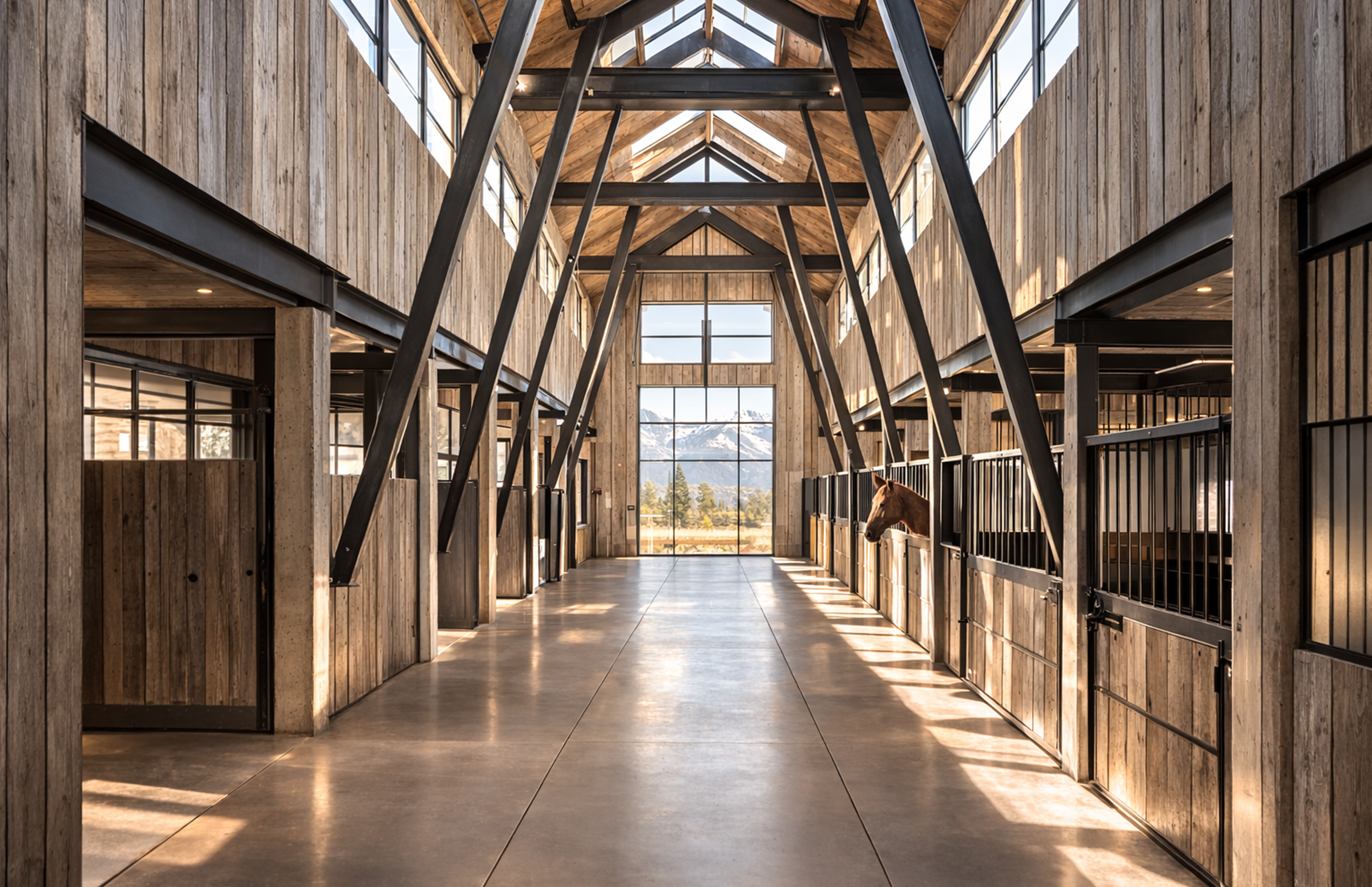 The stable becomes more than a utility; it is celebrated as an essential element of ranch life, grounding the home in place and tradition. Together, the stable and residence form a modern interpretation of ranch vernacular, embracing contemporary living while honoring the rhythms of the land. Specie Ranch is both working and retreat, a place where the expansive mesa and towering peaks enter daily life, creating a timeless dialogue between home, stable, and the mountains beyond.