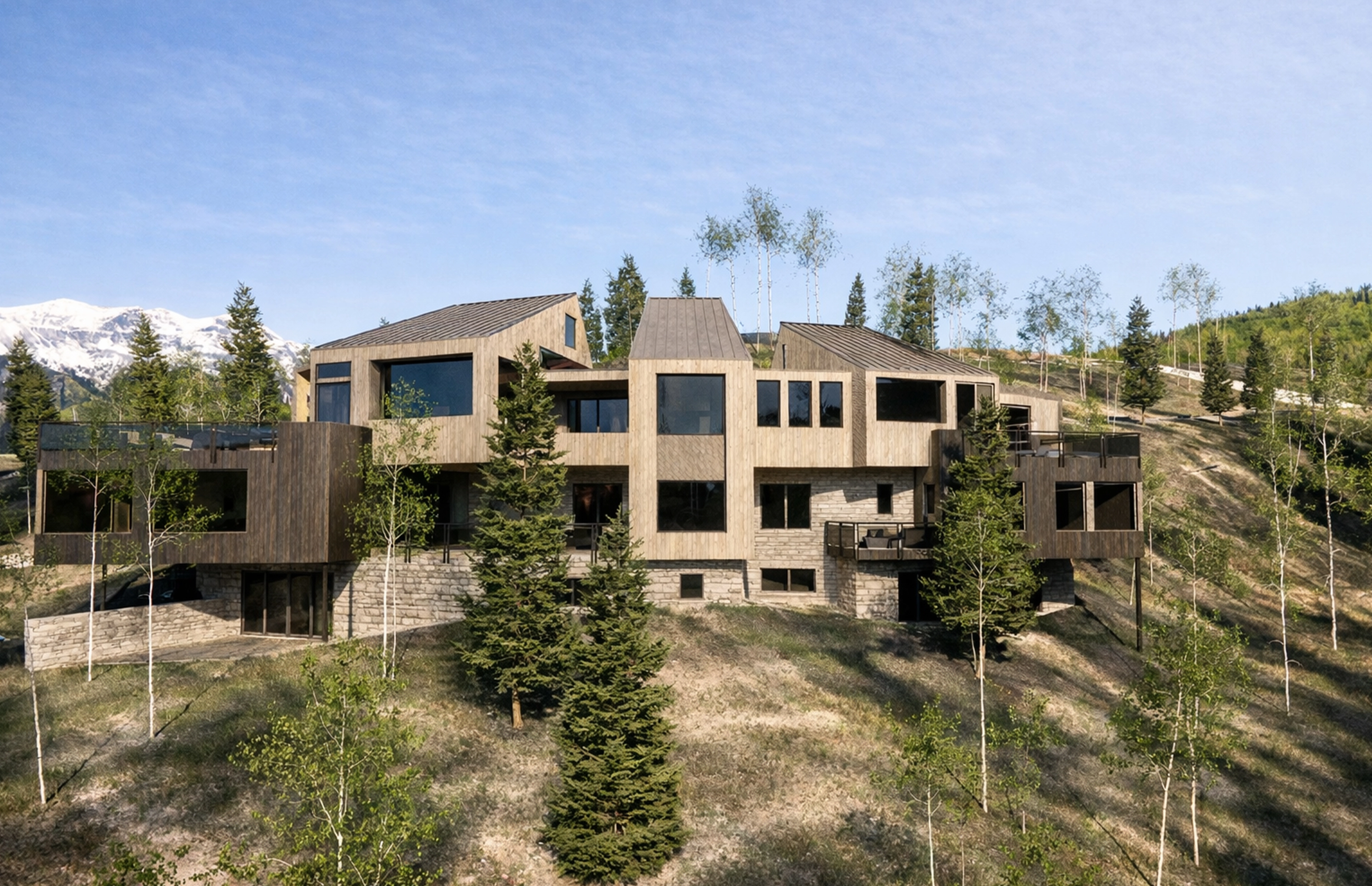 Rising from the steep slope of Mountain Village, Vischer is a modern retreat where stone, timber, and glass frame sweeping alpine views while grounding the home in the stillness of its peaks.