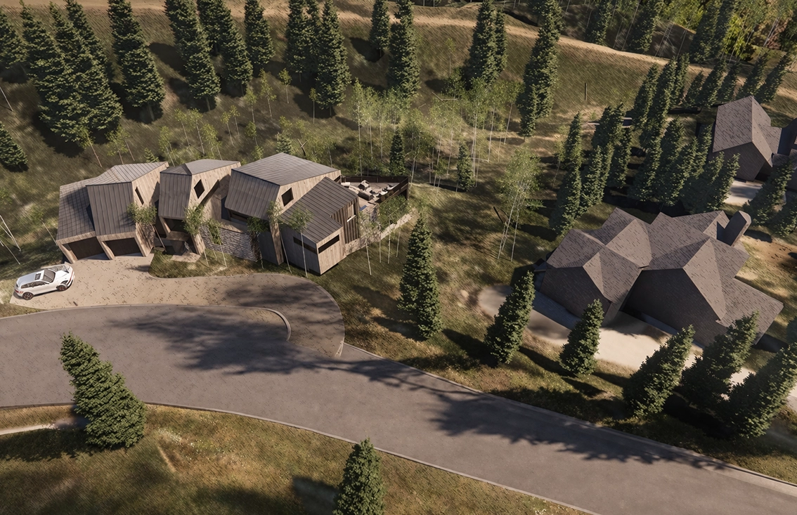 Rising from the steep slope of Mountain Village, this residence is anchored in stone and timber that echo the high alpine terrain. A strong vertical form defines the façade, framing walls of glass that open the home to sweeping mountain views. Inside, the interplay of stone, wood, and light creates interiors that are both grounded and expansive.