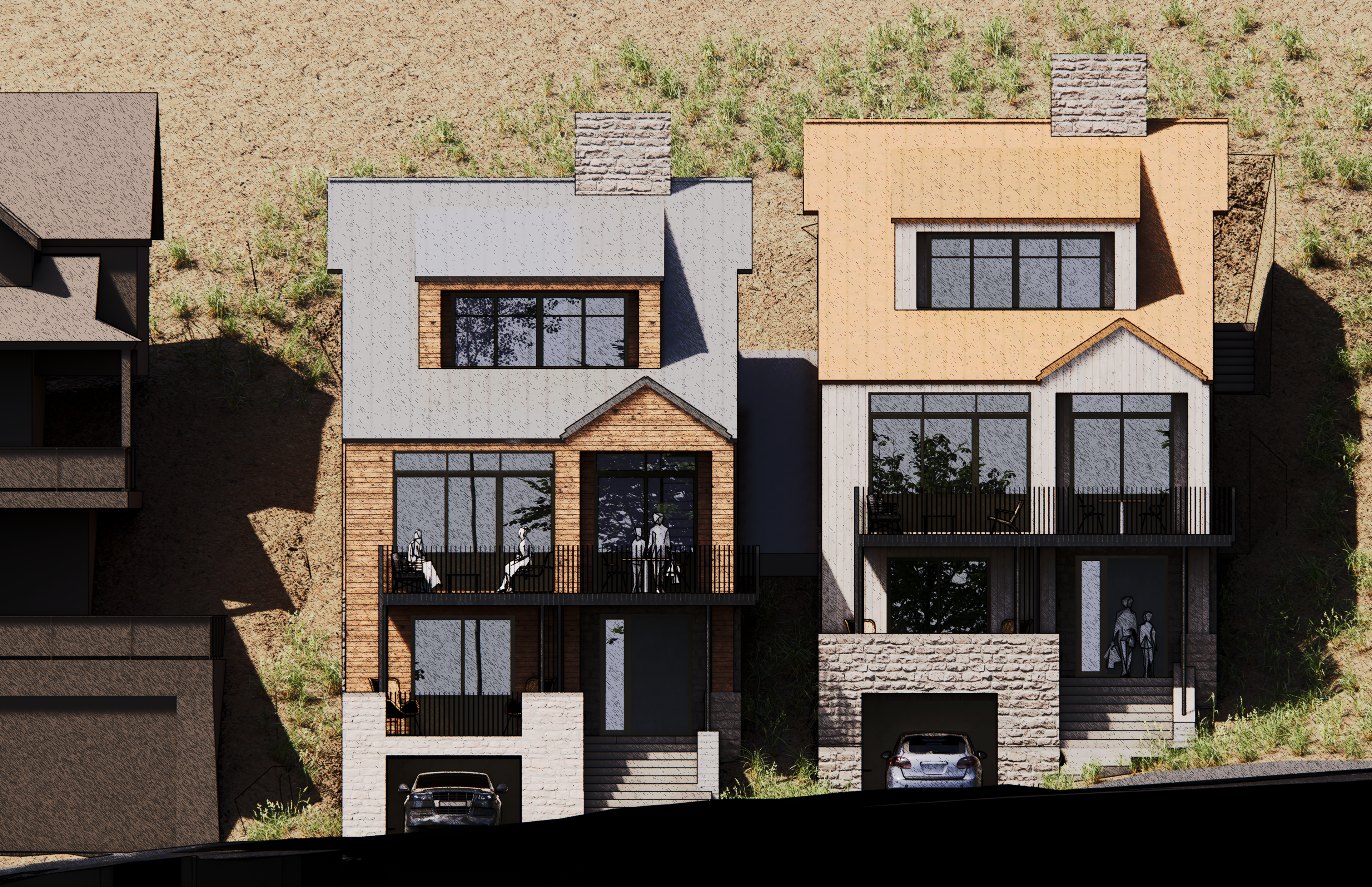 Set in the heart of Telluride, these two homesites one to the east and the other to the west were envisioned as a pair that speaks to one another across the landscape. Oriented to capture sweeping views of the ski resort and surrounding peaks, each residence is designed with a sense of balance: distinct in form yet harmonious in materiality.