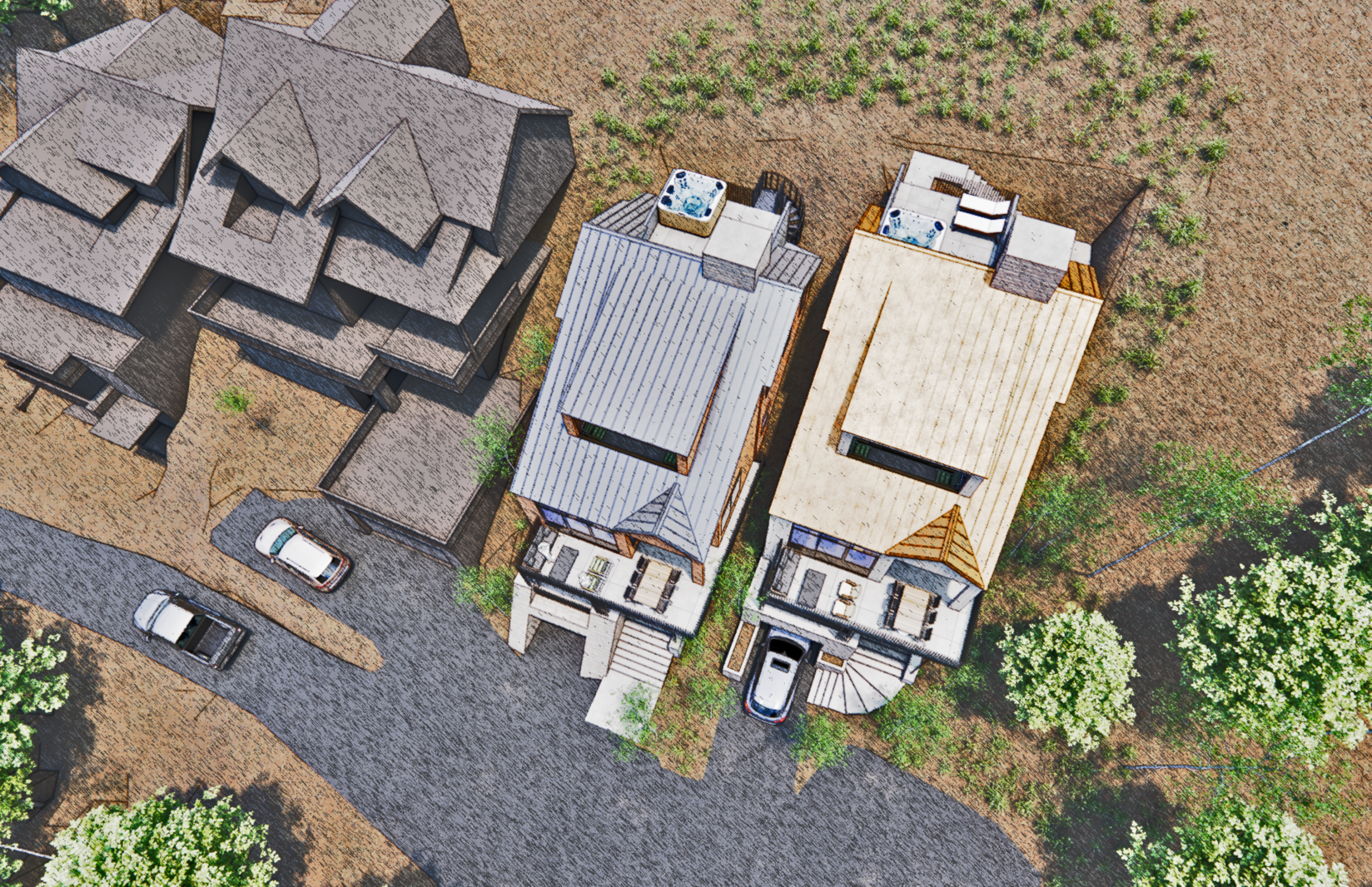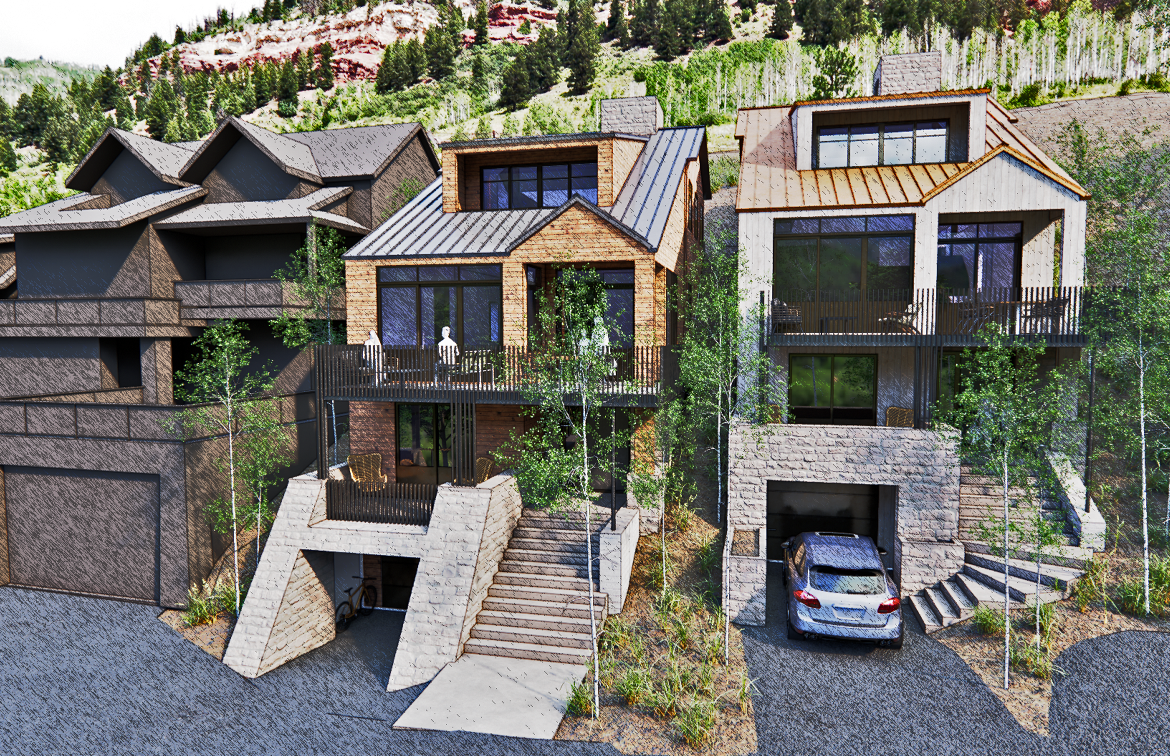 Two complementary homesites in Telluride, east and west, framing ski resort views with natural materials and a shared dialogue with the mountains.
