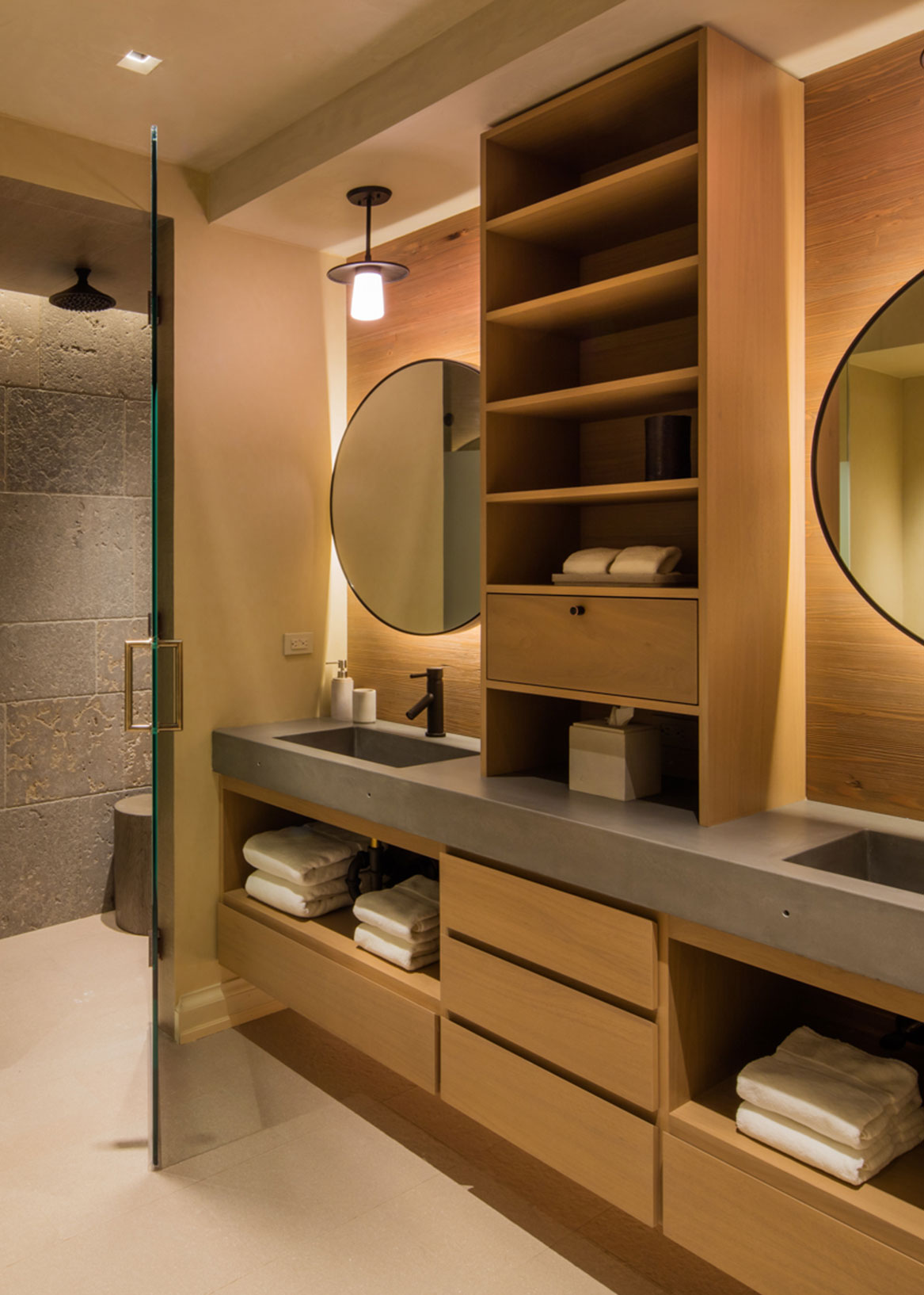 "Along Gregory Avenue, Museum House stands in dialogue with the historic museum next door and the rugged slope behind it. The design divides into two volumes connected at the center, their massing stepping naturally with the hillside. At the street, a restored historic shed—relocated and reimagined as a guest house—reinforces the pedestrian scale and frames the entry sequence.