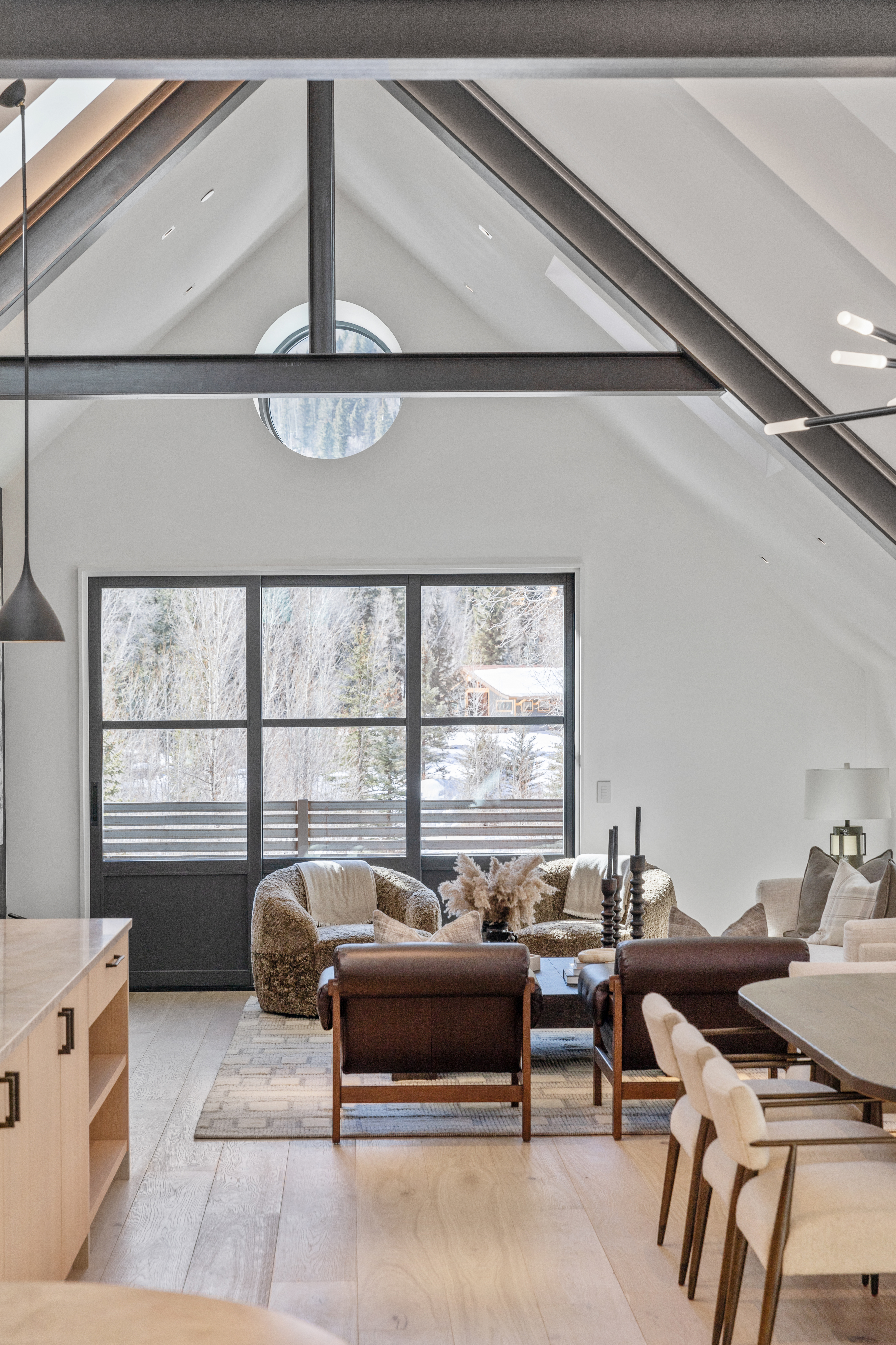 Subtle details—like the recessed entry, deep overhangs, and integrated lighting—create a refined, contemporary feel that remains respectful of the surrounding context. The result is a home that feels both grounded and quietly elevated, honoring Telluride’s past while pointing toward its future.