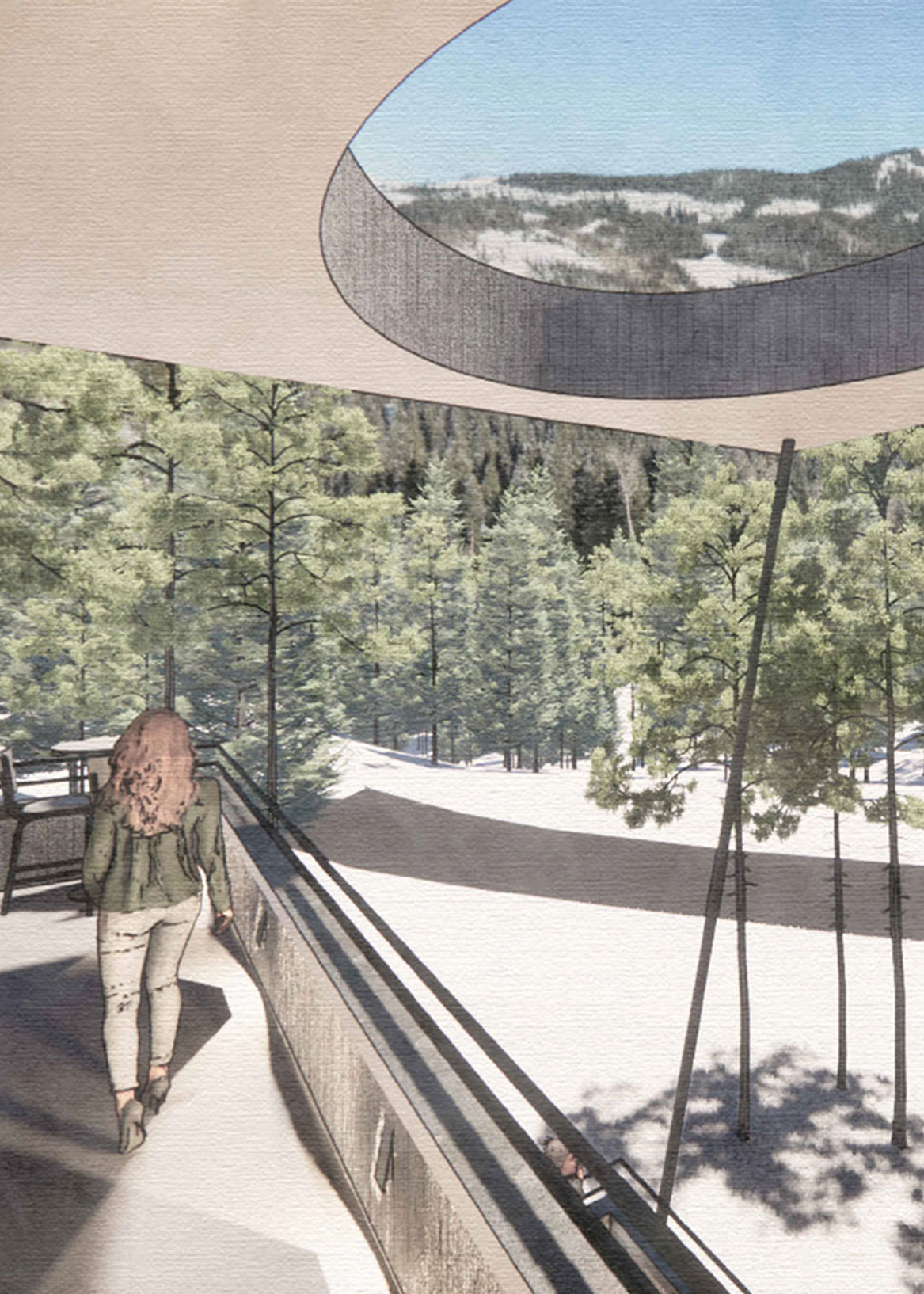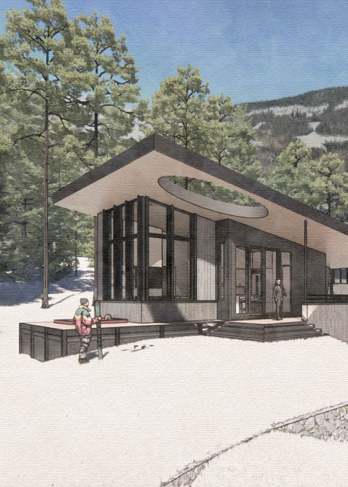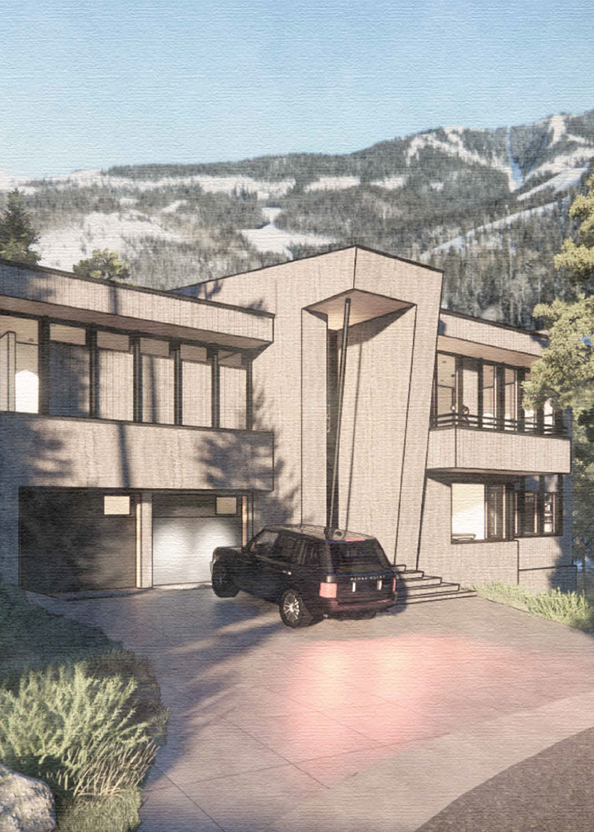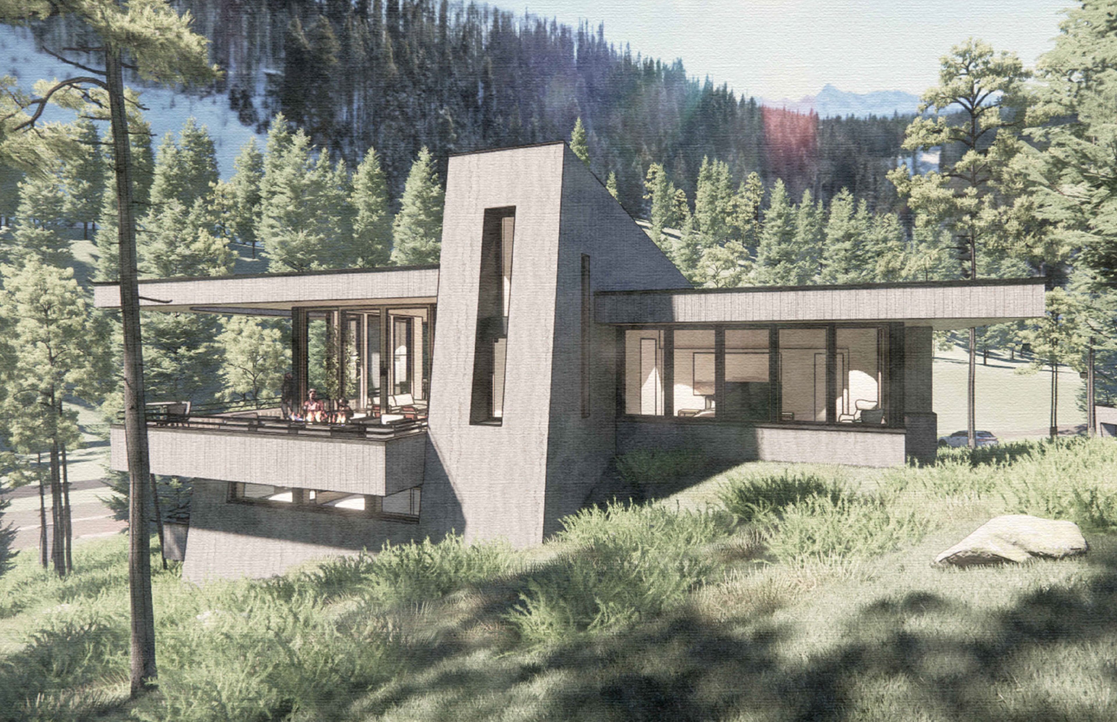 Sundance is a mountainside home that unfolds from bridge to ridge—where stepped forms, forest views, and weathered materials create a quiet retreat grounded in the slope.
